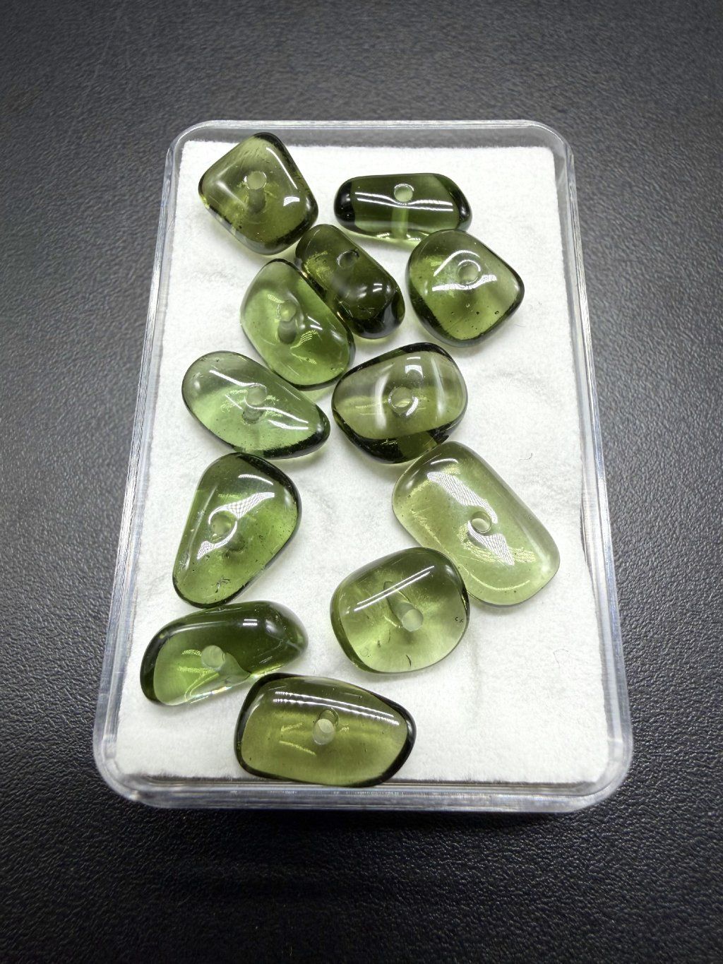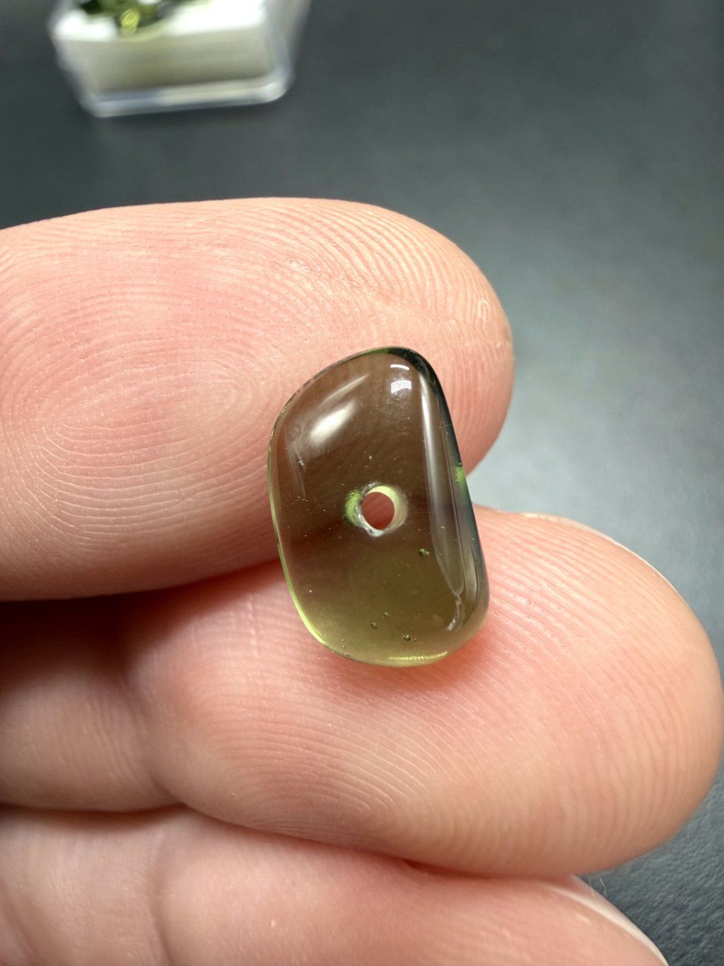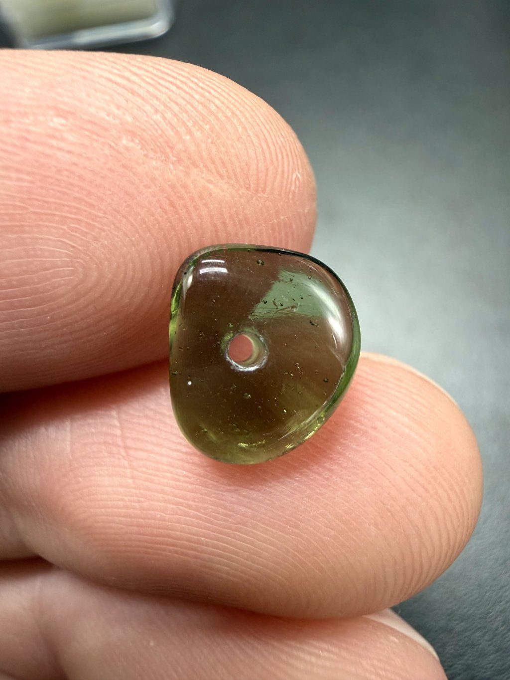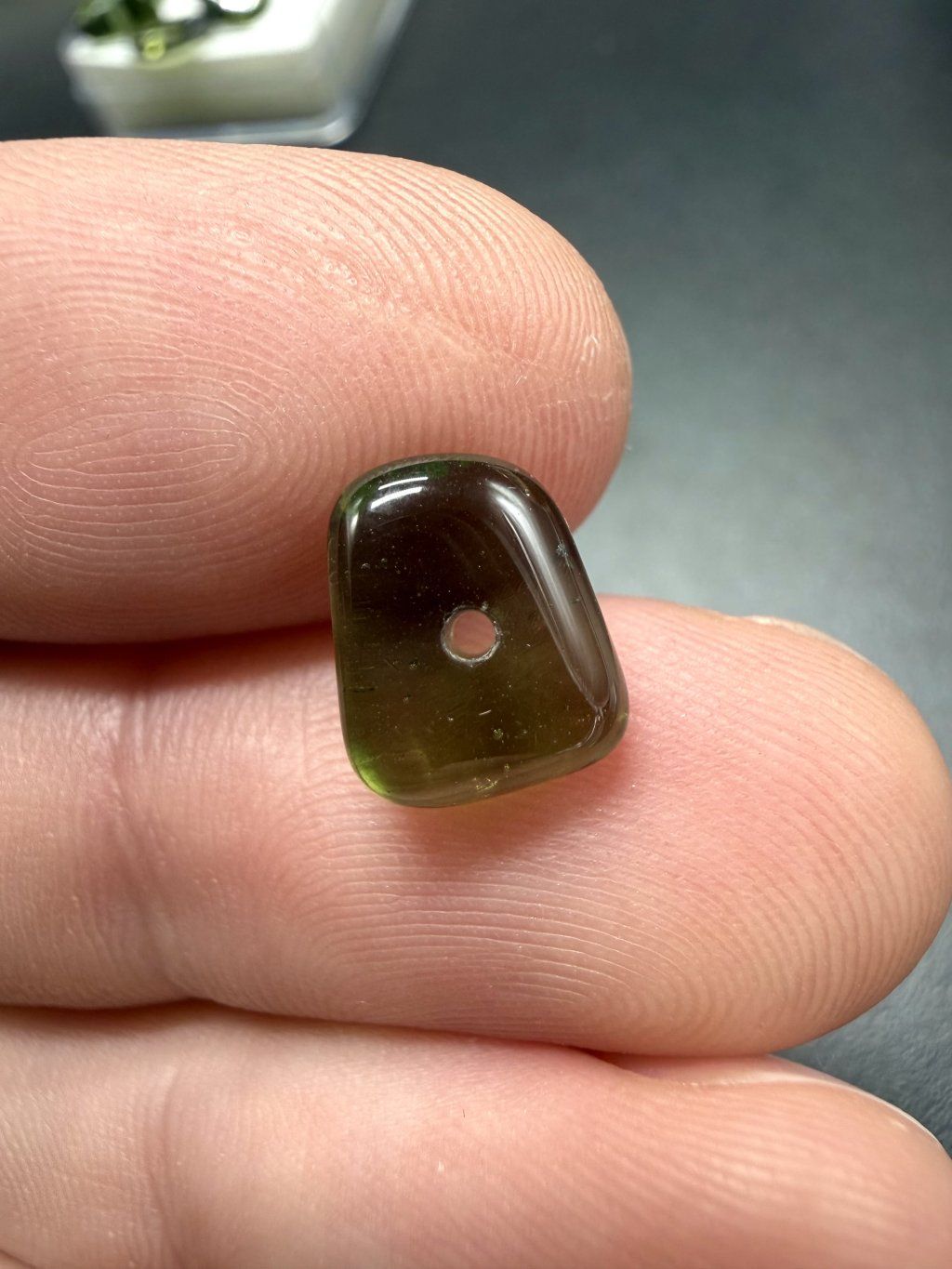 Moldavite bead with a 1.5 mm drilled hole – random piece