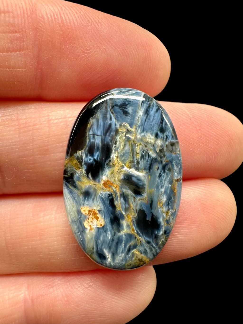 Pietersite stands out with a combination of blue, golden, brown, and gray shades that blend irregularly. When exposed to light movement, it may display the chatoyance effect (cat’s eye), caused by the orientation of fibers within the stone. It is most commonly cut into cabochons, where its structure and optical effects are best highlighted.
