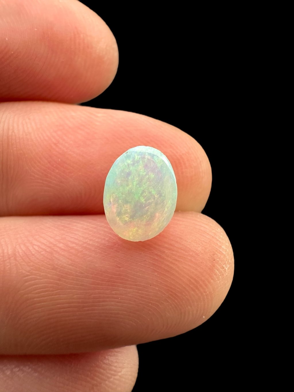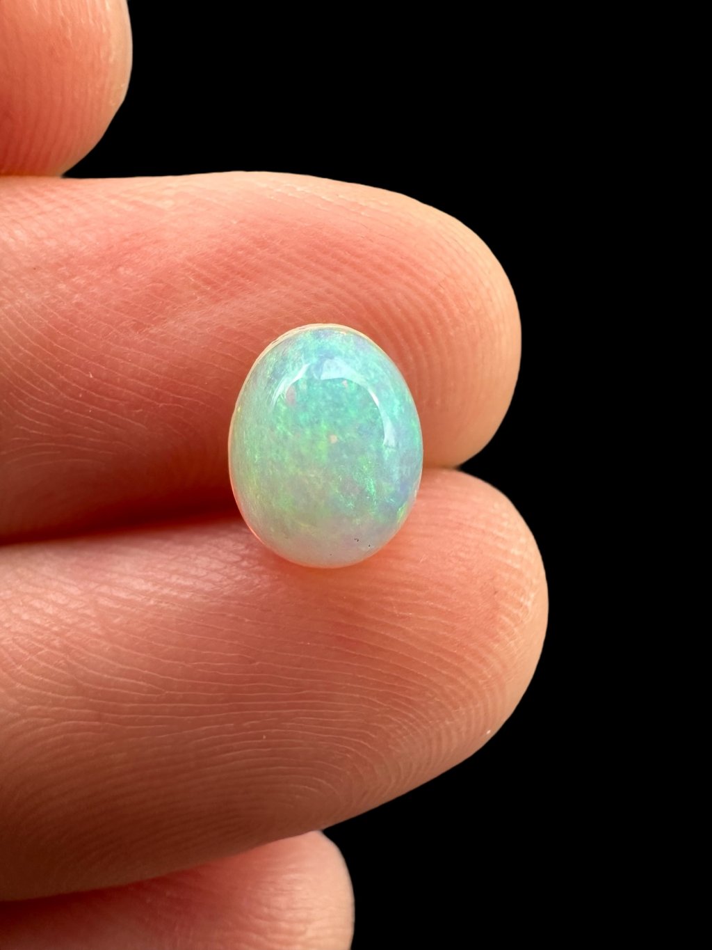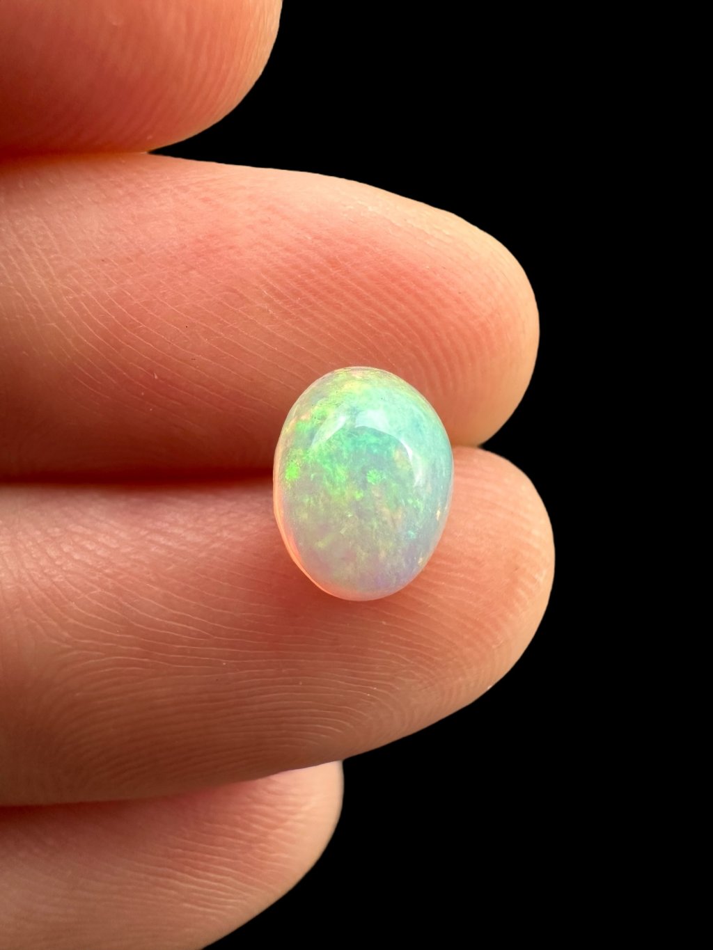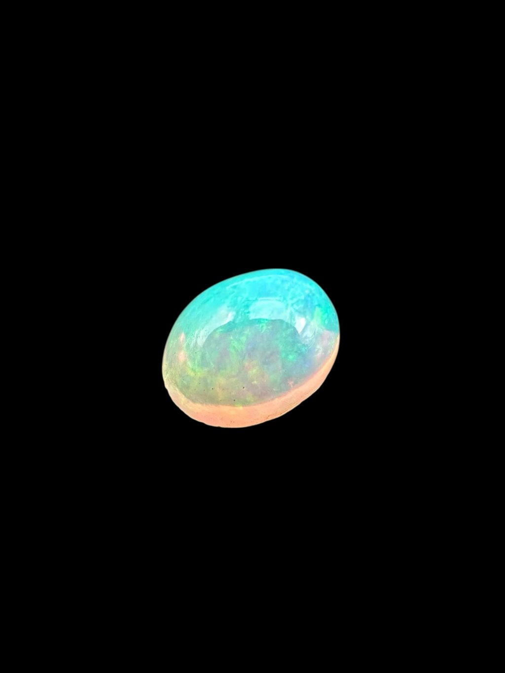 Ethiopian cabochons boast a wide range of colors—from light, milky whites through yellow and orange tones to intense red and green flashes. Many stones even display rare blue or violet play-of-color. Thanks to the cabochon shape, these colors flow smoothly across the domed surface.