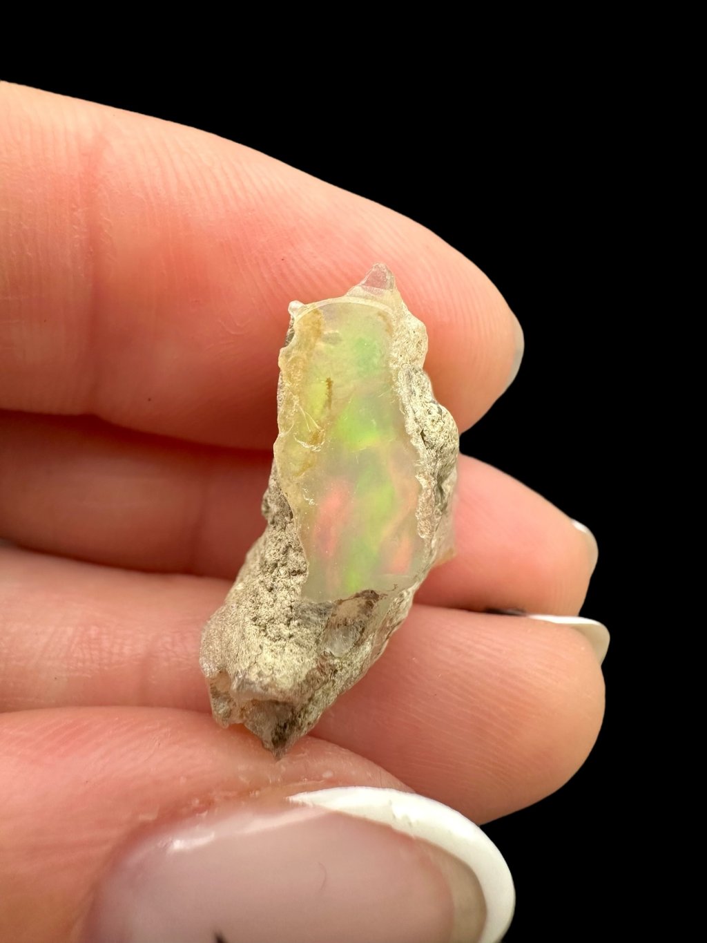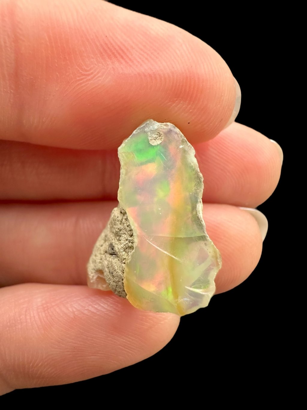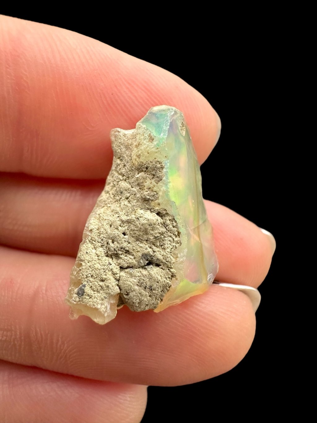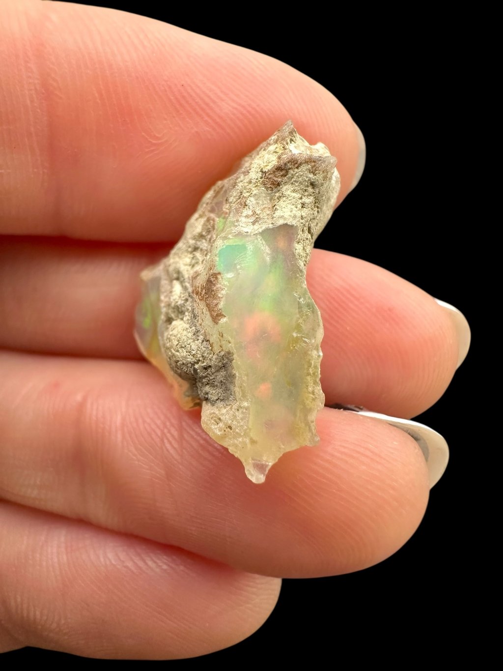 Precious opals from the Welo region in Ethiopia are considered some of the most beautiful and highest quality opals in the world. They are known for their unique play of color and high transparency, making them very popular among jewelers and collectors. Most Welo opals are hydrophane, meaning they can absorb water. When they do, they may become more transparent and enhance their colors, but they are also more prone to cracking due to moisture changes.