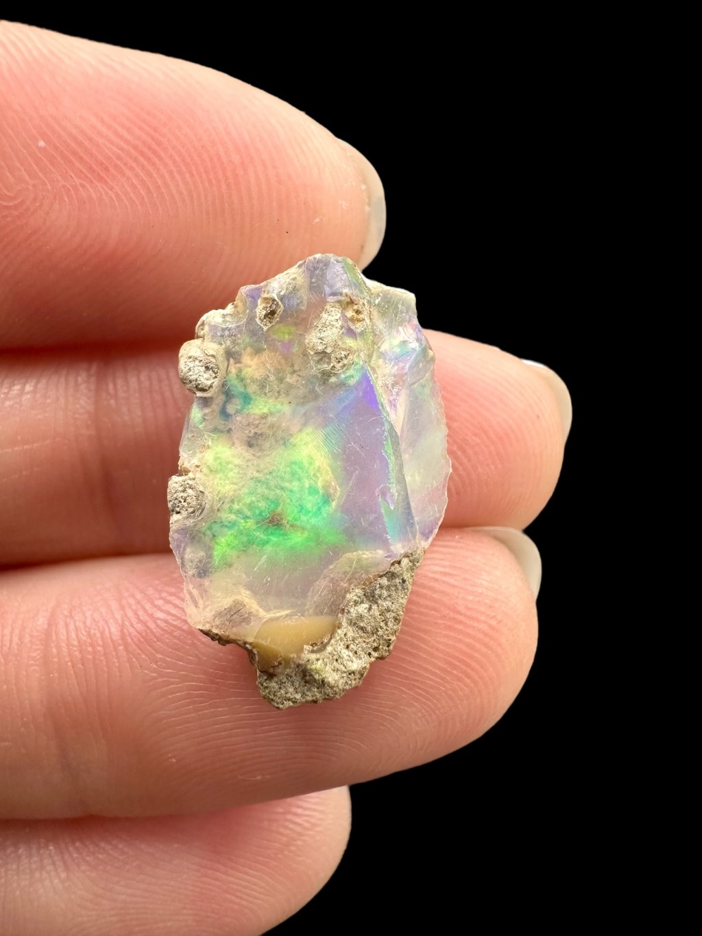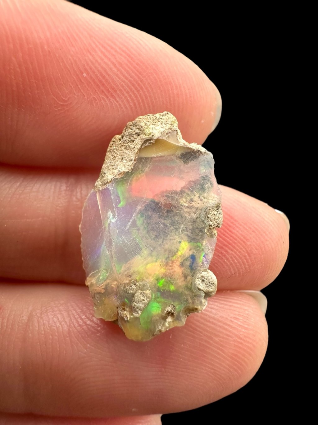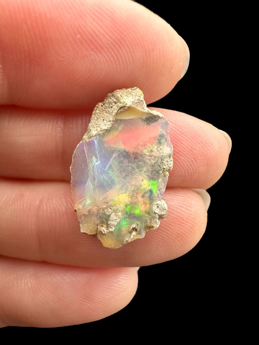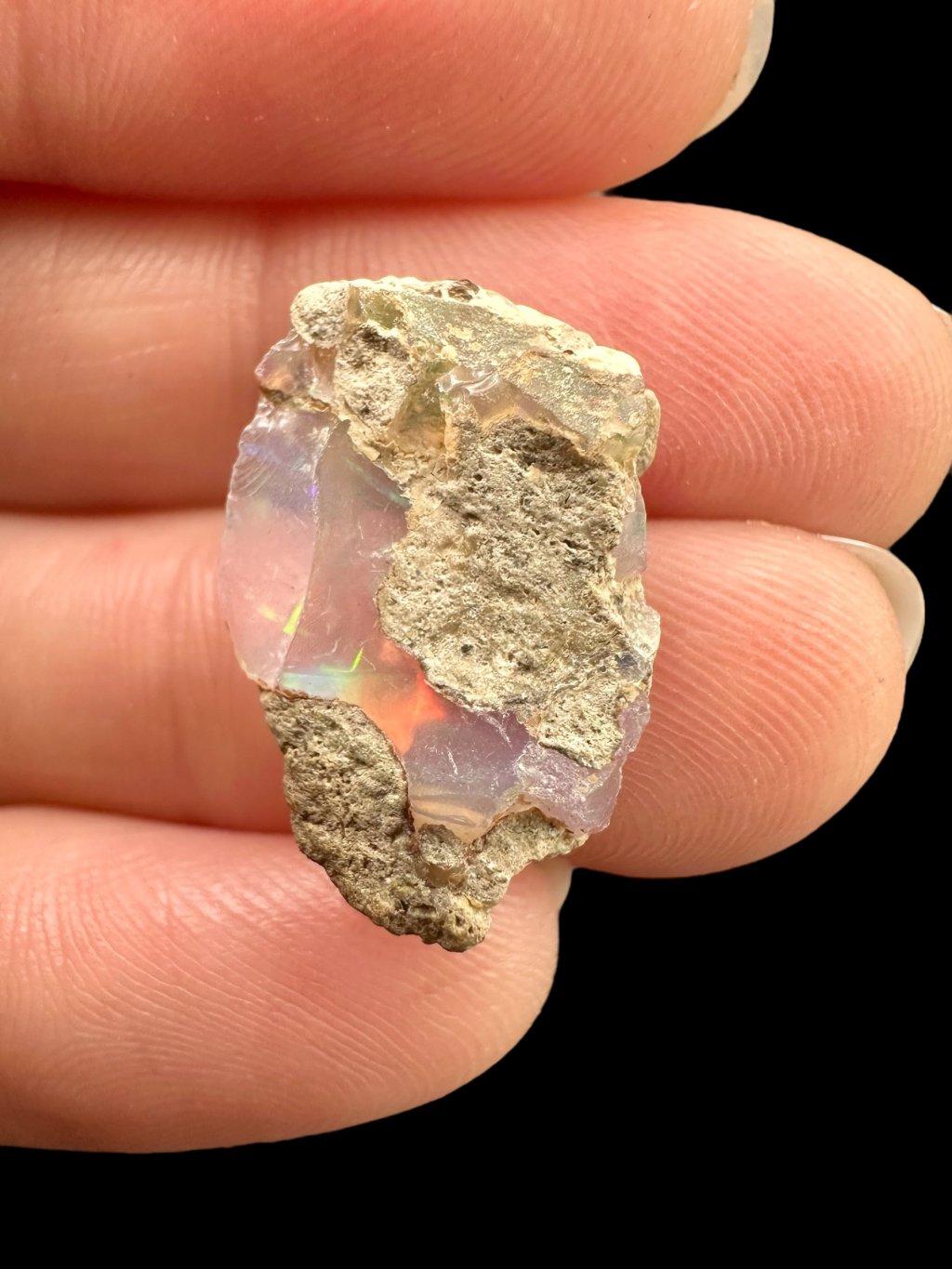 Precious opals from the Welo region in Ethiopia are considered some of the most beautiful and highest quality opals in the world. They are known for their unique play of color and high transparency, making them very popular among jewelers and collectors. Most Welo opals are hydrophane, meaning they can absorb water. When they do, they may become more transparent and enhance their colors, but they are also more prone to cracking due to moisture changes.