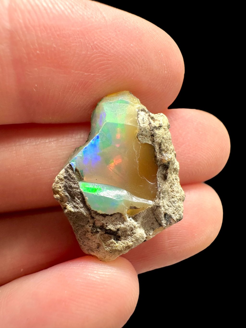 Precious opals from the Welo region in Ethiopia are considered some of the most beautiful and highest quality opals in the world. They are known for their unique play of color and high transparency, making them very popular among jewelers and collectors. Most Welo opals are hydrophane, meaning they can absorb water. When they do, they may become more transparent and enhance their colors, but they are also more prone to cracking due to moisture changes.