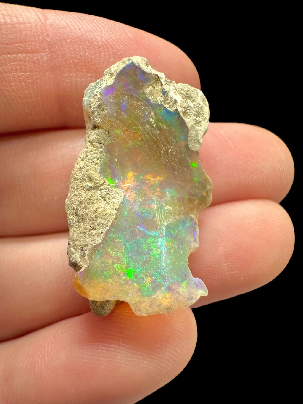 Precious opals from the Welo region in Ethiopia are considered some of the most beautiful and highest quality opals in the world. They are known for their unique play of color and high transparency, making them very popular among jewelers and collectors. Most Welo opals are hydrophane, meaning they can absorb water. When they do, they may become more transparent and enhance their colors, but they are also more prone to cracking due to moisture changes.