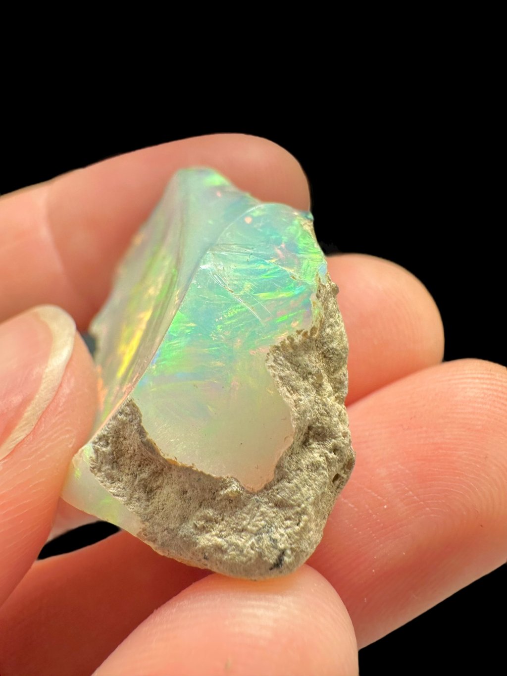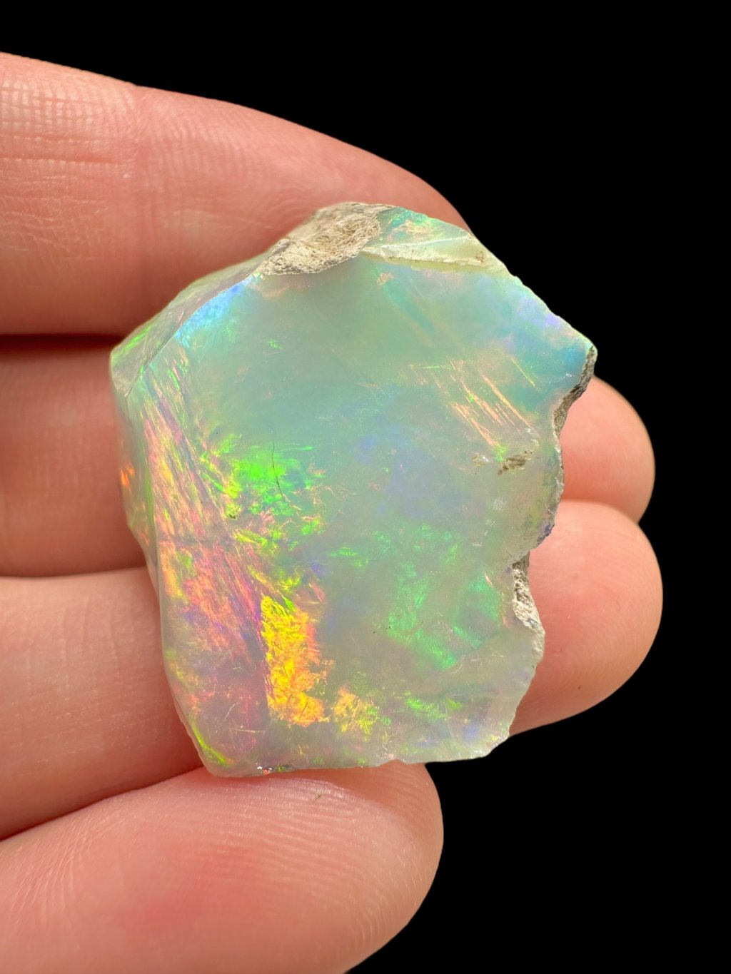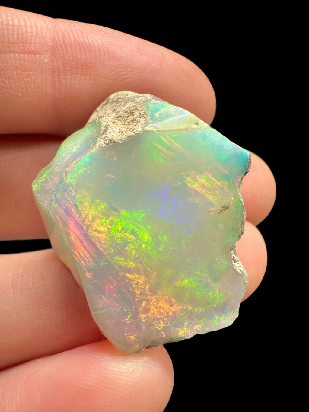 Precious opals from the Welo region in Ethiopia are considered some of the most beautiful and highest quality opals in the world. They are known for their unique play of color and high transparency, making them very popular among jewelers and collectors. Most Welo opals are hydrophane, meaning they can absorb water. When they do, they may become more transparent and enhance their colors, but they are also more prone to cracking due to moisture changes.