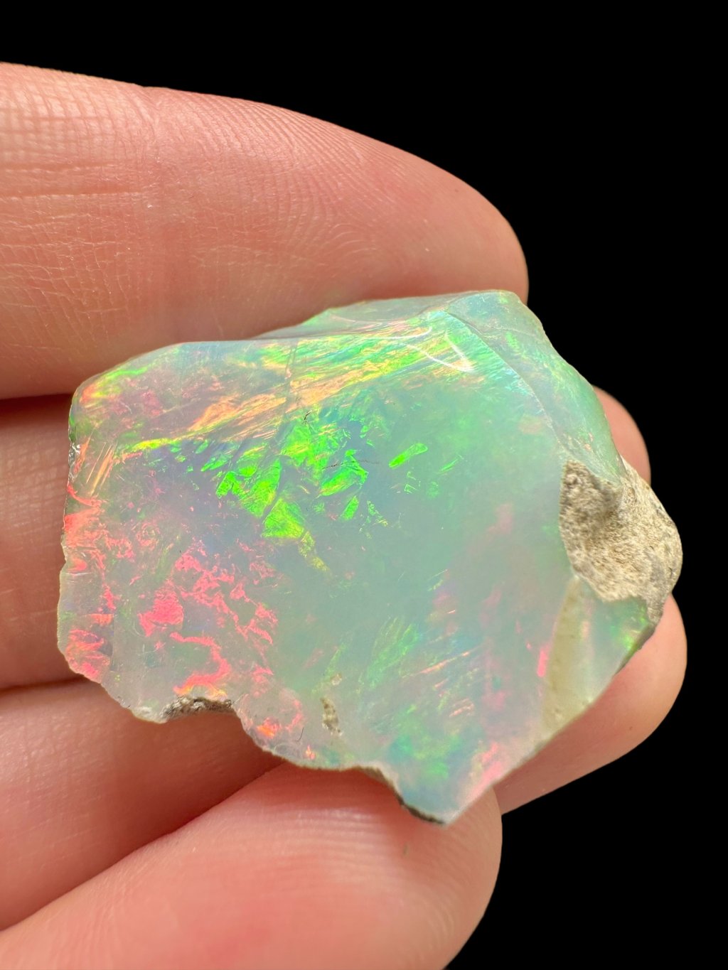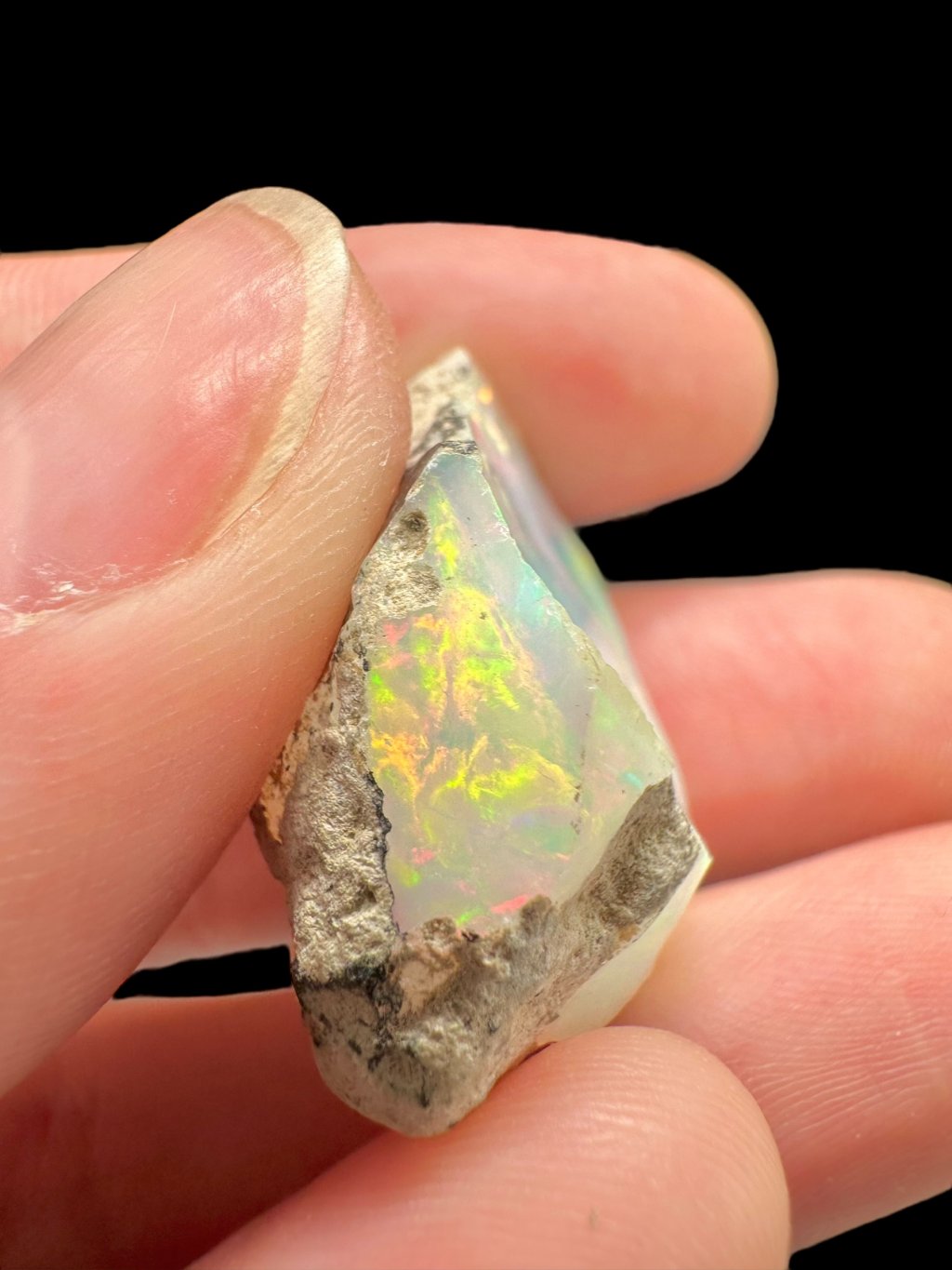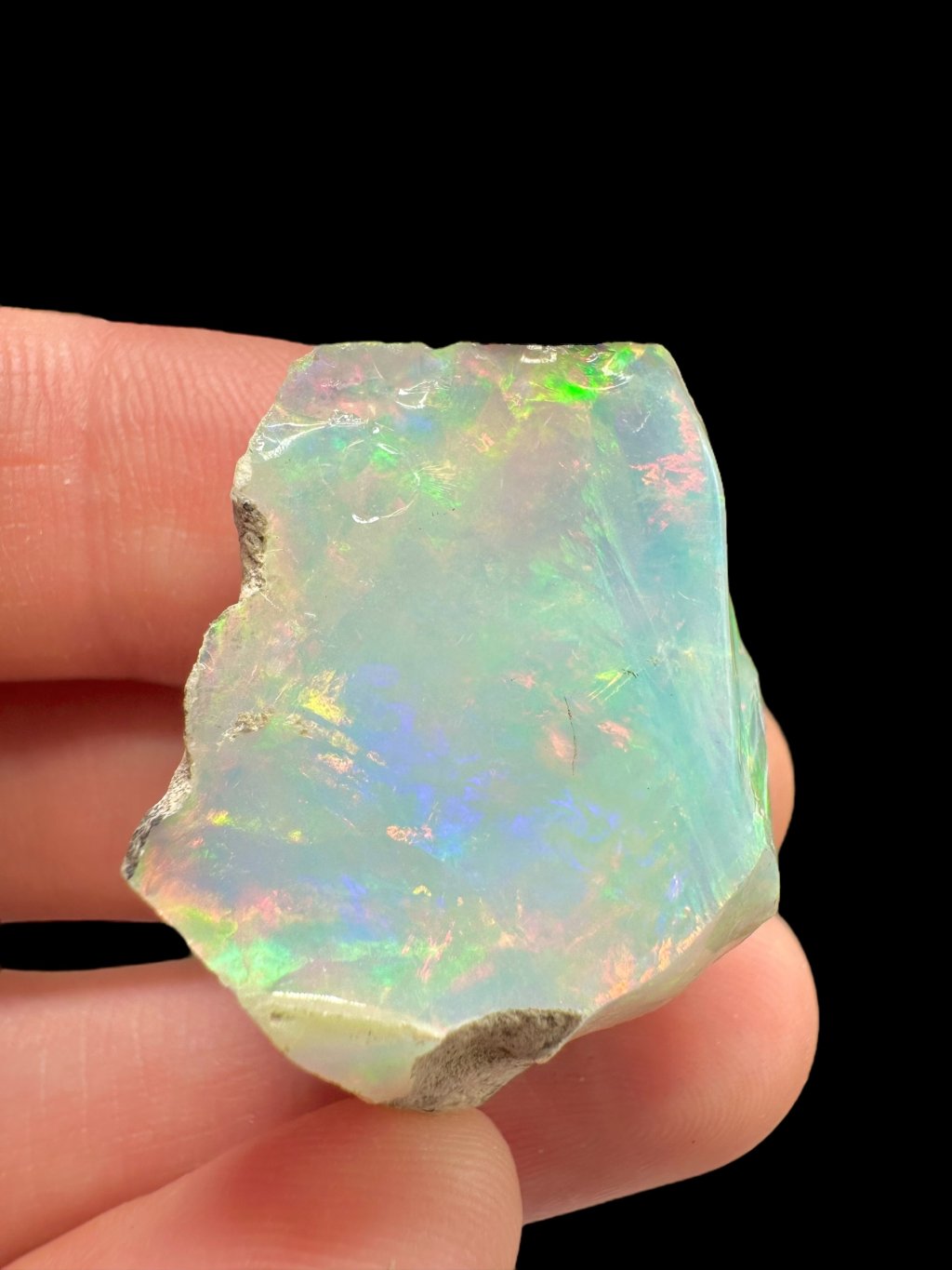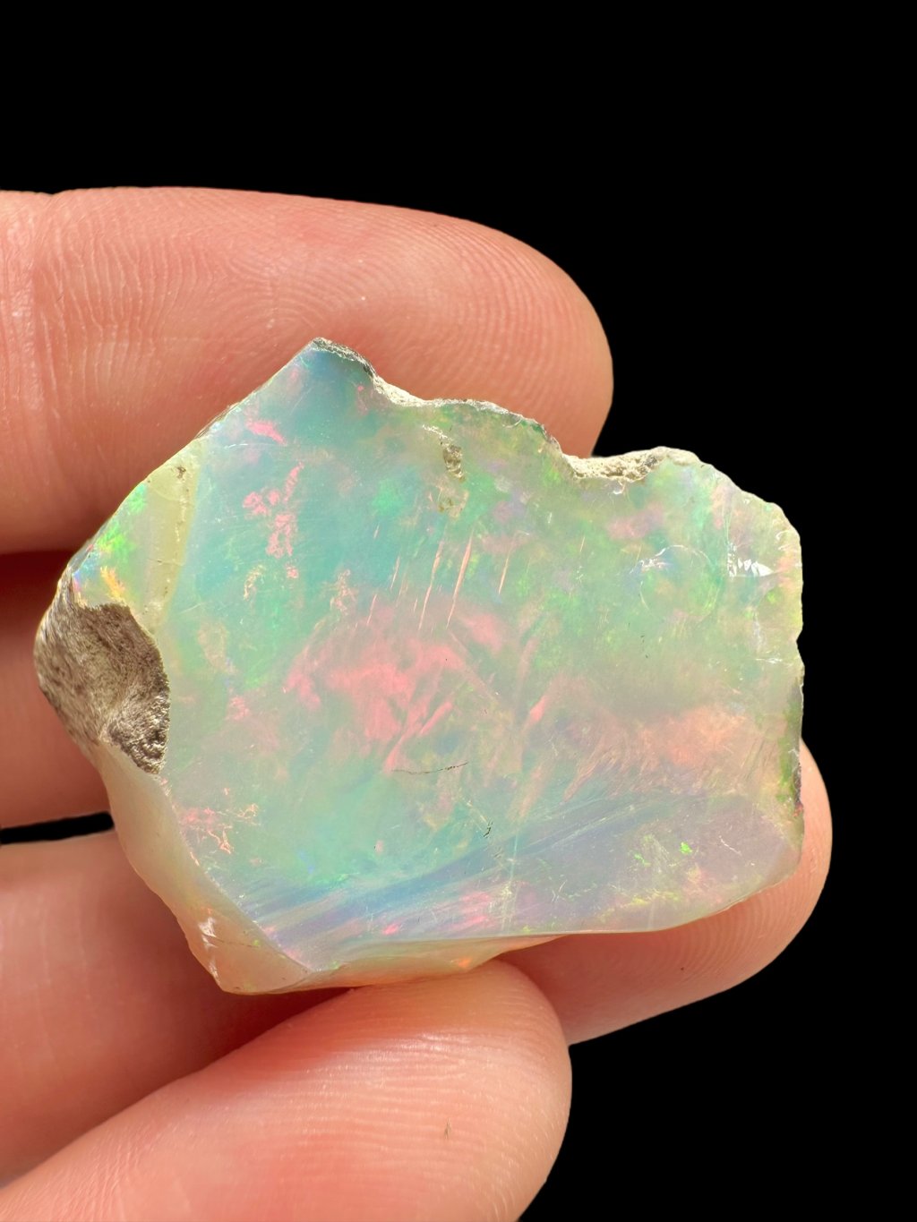 Precious opals from the Welo region in Ethiopia are considered some of the most beautiful and highest quality opals in the world. They are known for their unique play of color and high transparency, making them very popular among jewelers and collectors. Most Welo opals are hydrophane, meaning they can absorb water. When they do, they may become more transparent and enhance their colors, but they are also more prone to cracking due to moisture changes.