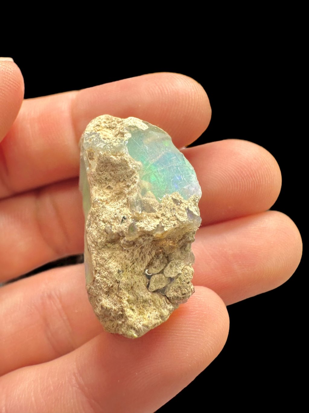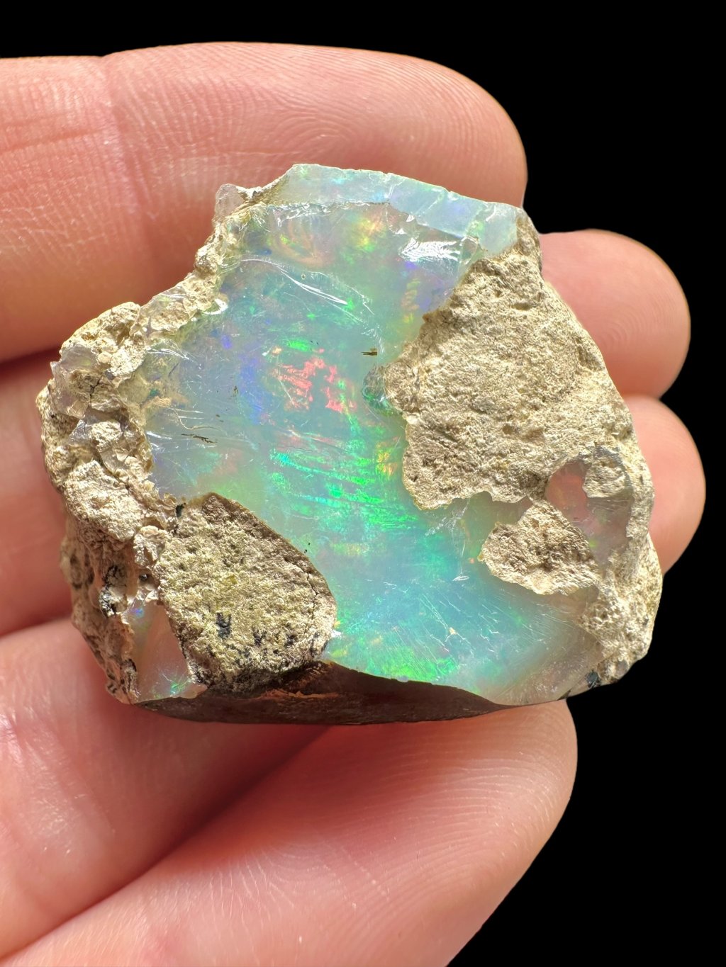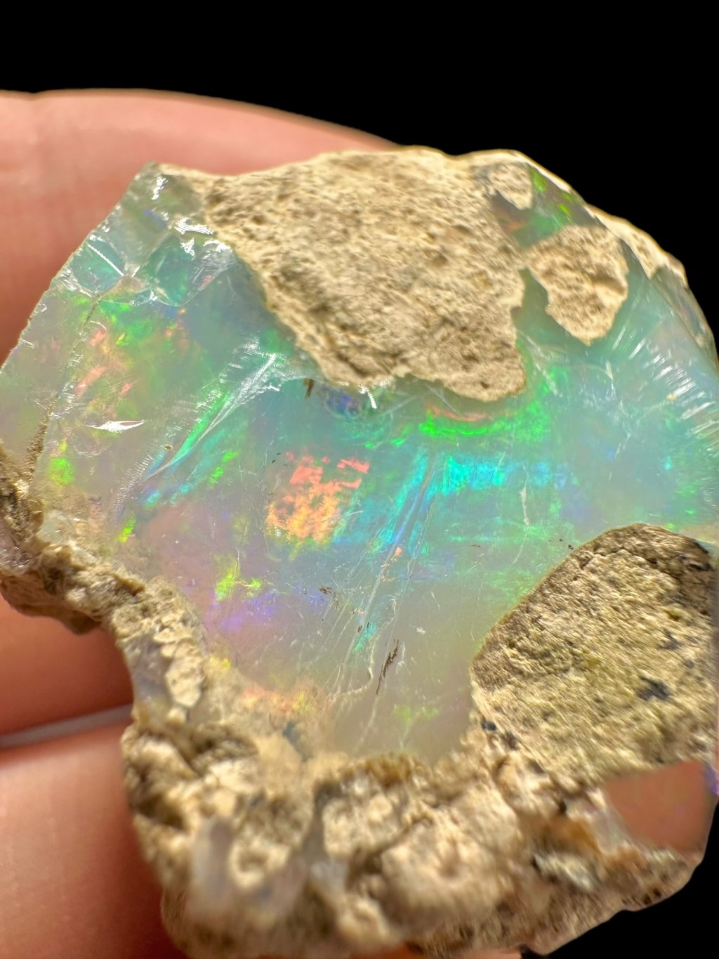 Precious opals from the Welo region in Ethiopia are considered some of the most beautiful and highest quality opals in the world. They are known for their unique play of color and high transparency, making them very popular among jewelers and collectors. Most Welo opals are hydrophane, meaning they can absorb water. When they do, they may become more transparent and enhance their colors, but they are also more prone to cracking due to moisture changes.