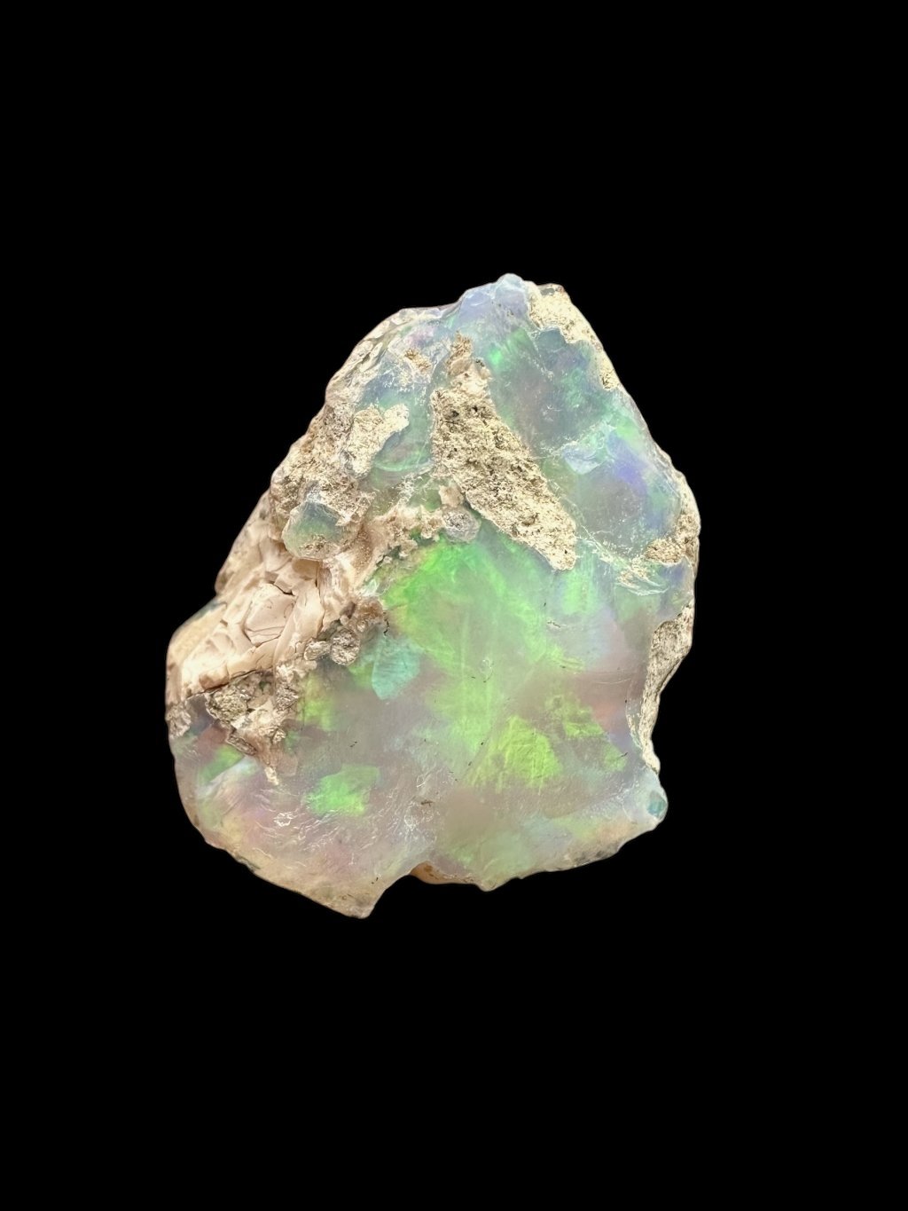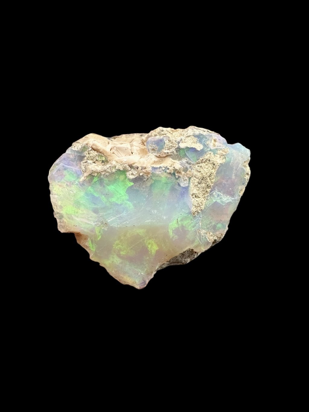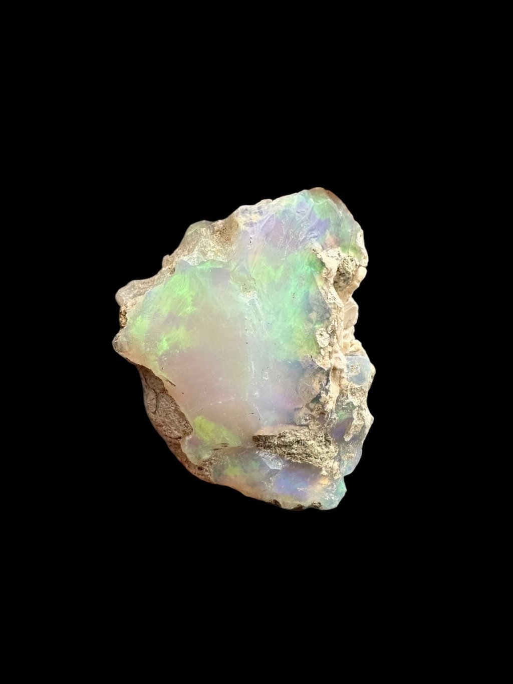 Precious opals from the Welo region in Ethiopia are considered some of the most beautiful and highest quality opals in the world. They are known for their unique play of color and high transparency, making them very popular among jewelers and collectors. Most Welo opals are hydrophane, meaning they can absorb water. When they do, they may become more transparent and enhance their colors, but they are also more prone to cracking due to moisture changes.