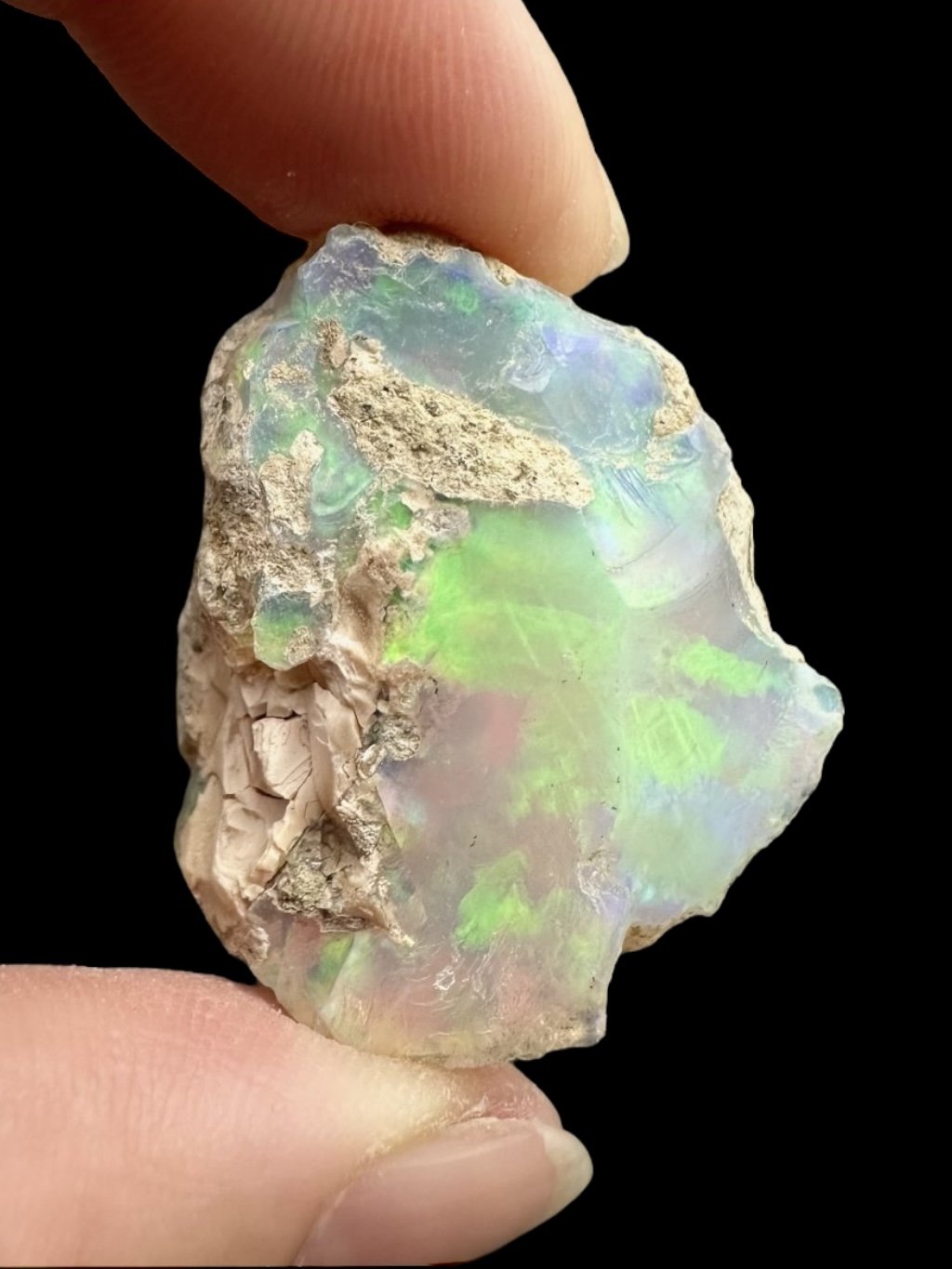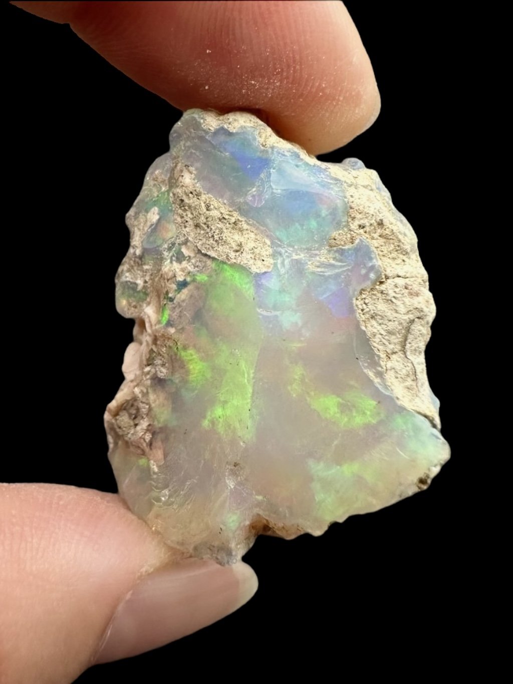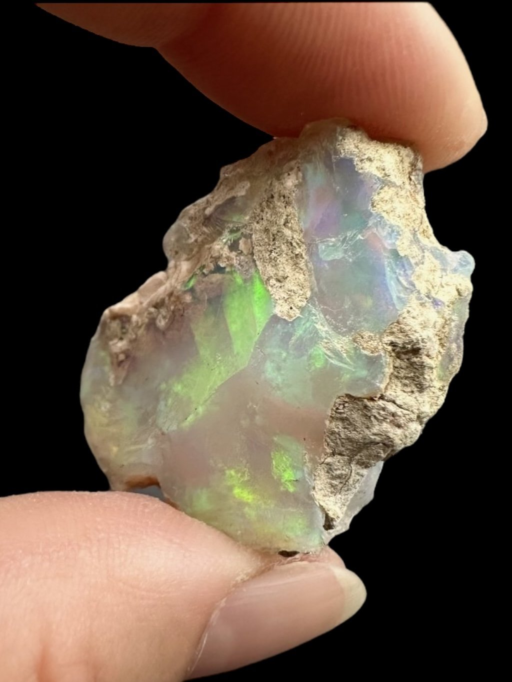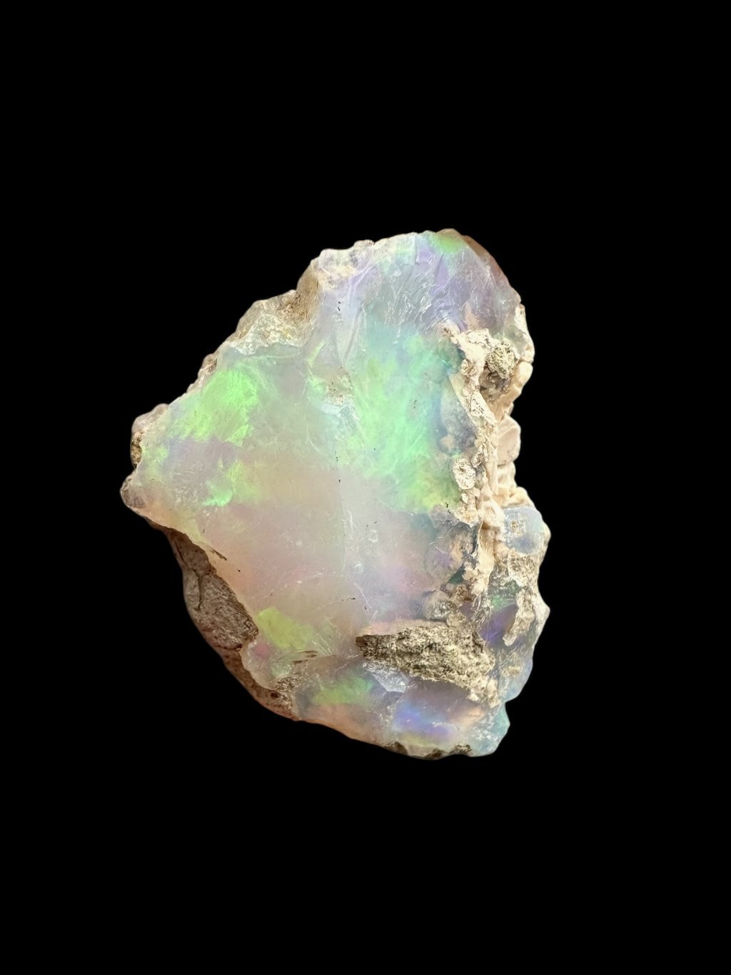 Precious opals from the Welo region in Ethiopia are considered some of the most beautiful and highest quality opals in the world. They are known for their unique play of color and high transparency, making them very popular among jewelers and collectors. Most Welo opals are hydrophane, meaning they can absorb water. When they do, they may become more transparent and enhance their colors, but they are also more prone to cracking due to moisture changes.