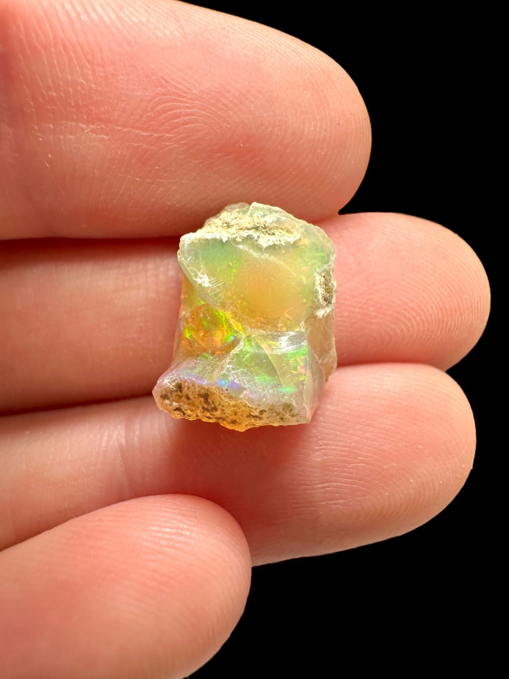 Precious opals from the Welo region in Ethiopia are considered some of the most beautiful and highest quality opals in the world. They are known for their unique play of color and high transparency, making them very popular among jewelers and collectors. Most Welo opals are hydrophane, meaning they can absorb water. When they do, they may become more transparent and enhance their colors, but they are also more prone to cracking due to moisture changes.