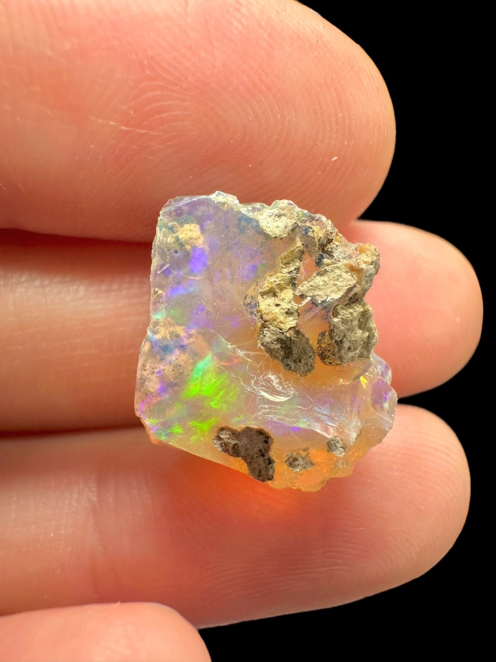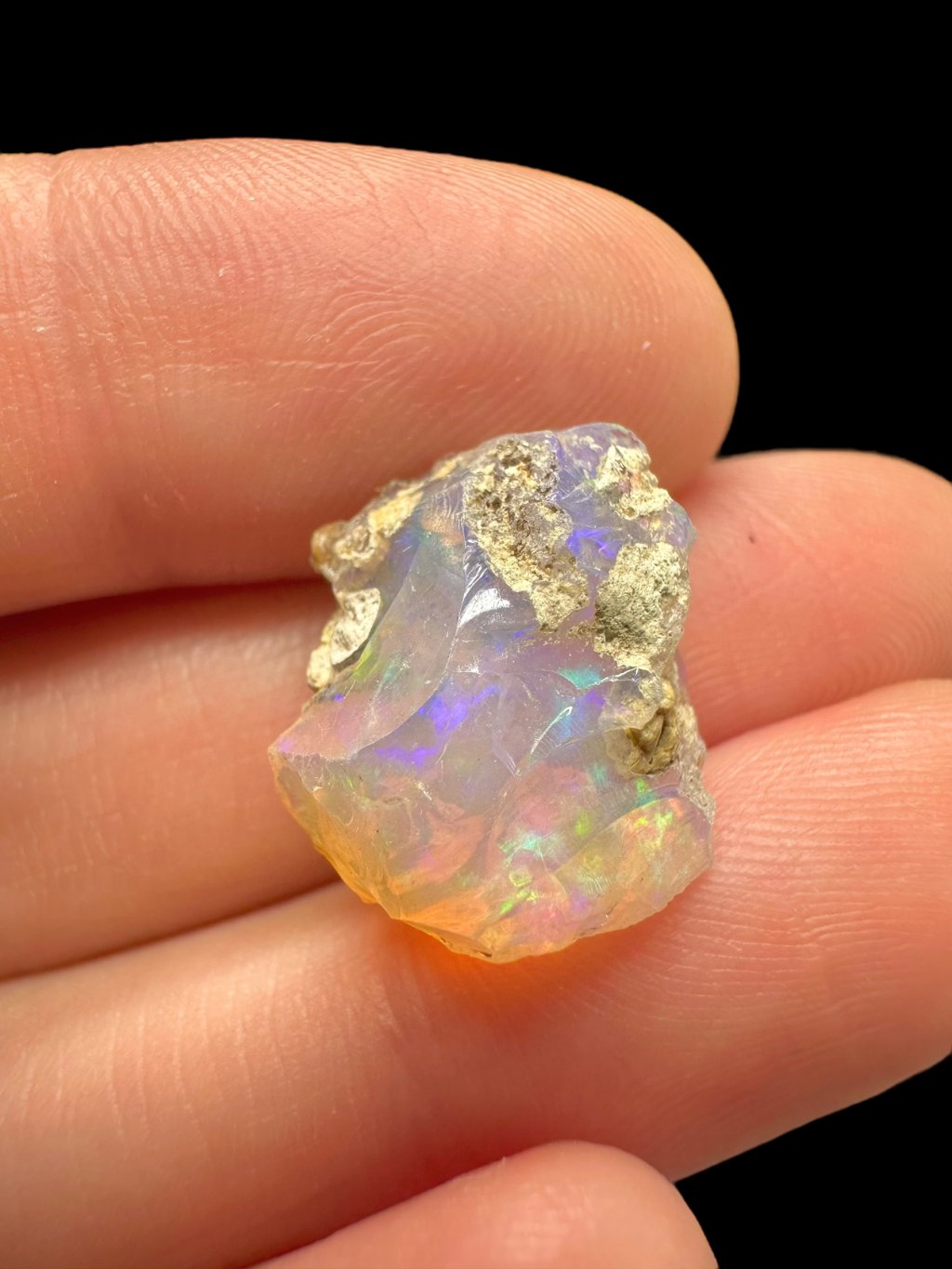 Precious opals from the Welo region in Ethiopia are considered some of the most beautiful and highest quality opals in the world. They are known for their unique play of color and high transparency, making them very popular among jewelers and collectors. Most Welo opals are hydrophane, meaning they can absorb water. When they do, they may become more transparent and enhance their colors, but they are also more prone to cracking due to moisture changes.