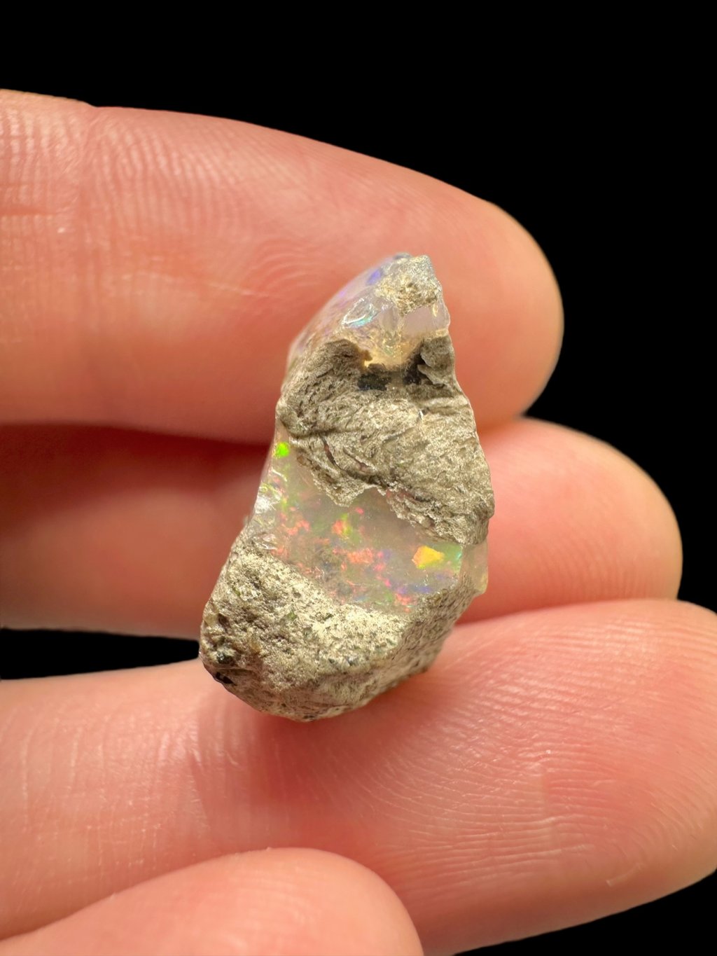 Precious opals from the Welo region in Ethiopia are considered some of the most beautiful and highest quality opals in the world. They are known for their unique play of color and high transparency, making them very popular among jewelers and collectors. Most Welo opals are hydrophane, meaning they can absorb water. When they do, they may become more transparent and enhance their colors, but they are also more prone to cracking due to moisture changes.
