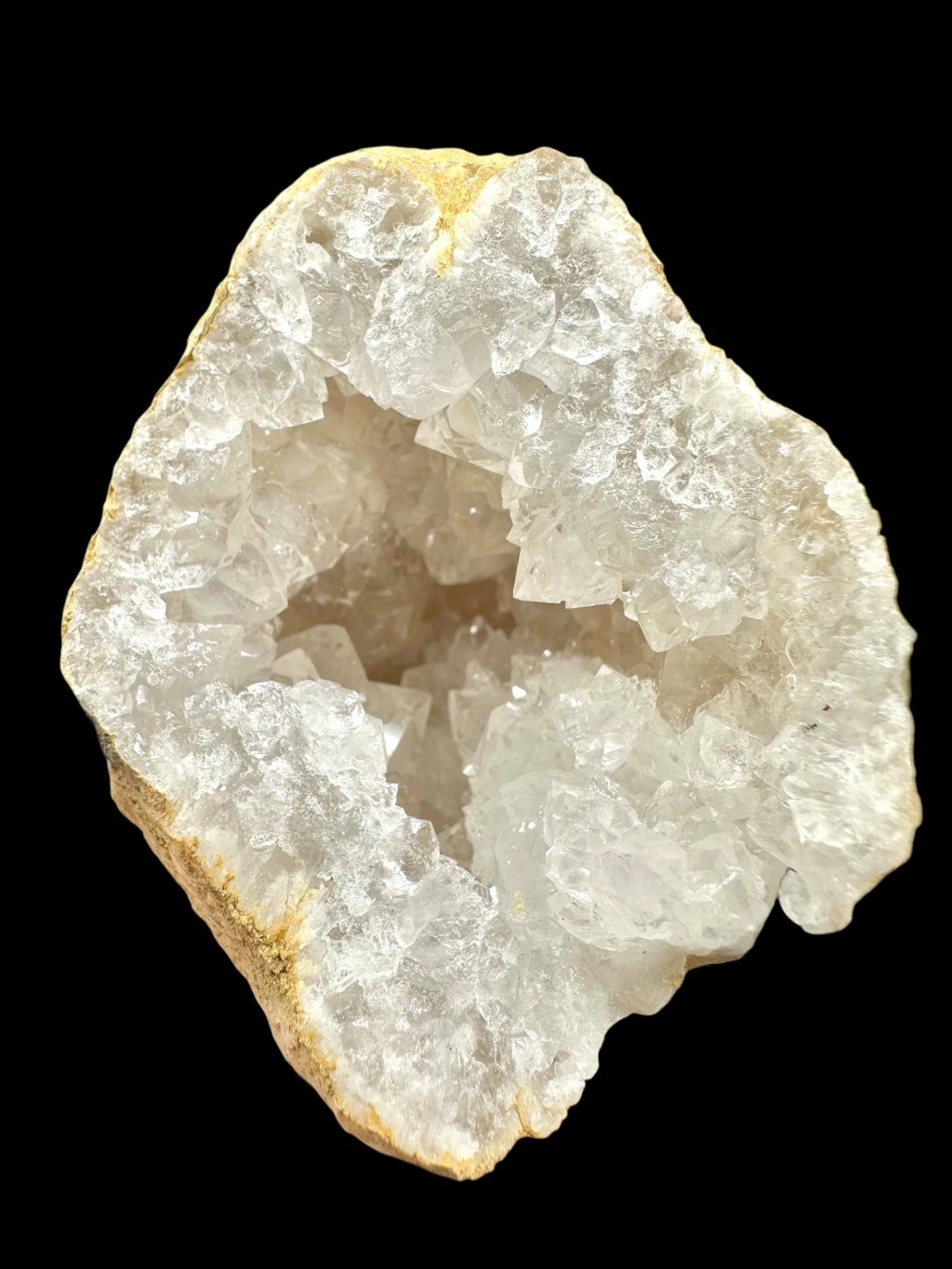 Crystal geodes are natural stone formations that contain crystals inside their cavity. In the case of Moroccan crystal geodes, they are geodes whose inner space is filled with clear and transparent crystals of crystal, which is most often quartz.