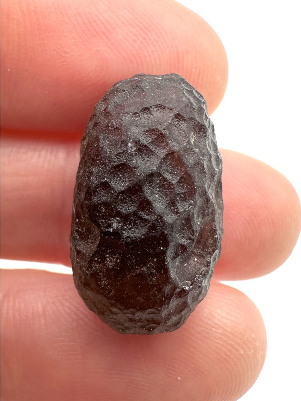 Saffordite is a rare type of natural glass, known as pseudotectite, which was first identified in the Safford area of Arizona, USA. Unlike true tektites, which are formed by the melting of the Earth's crust during a meteorite impact, Saffordites are the result of rapid cooling of lava, resulting in the formation of a glassy structure. Saffordite is usually dark brown in colour, occasionally tinged with purple. Its occurrence is limited to certain areas in Arizona.