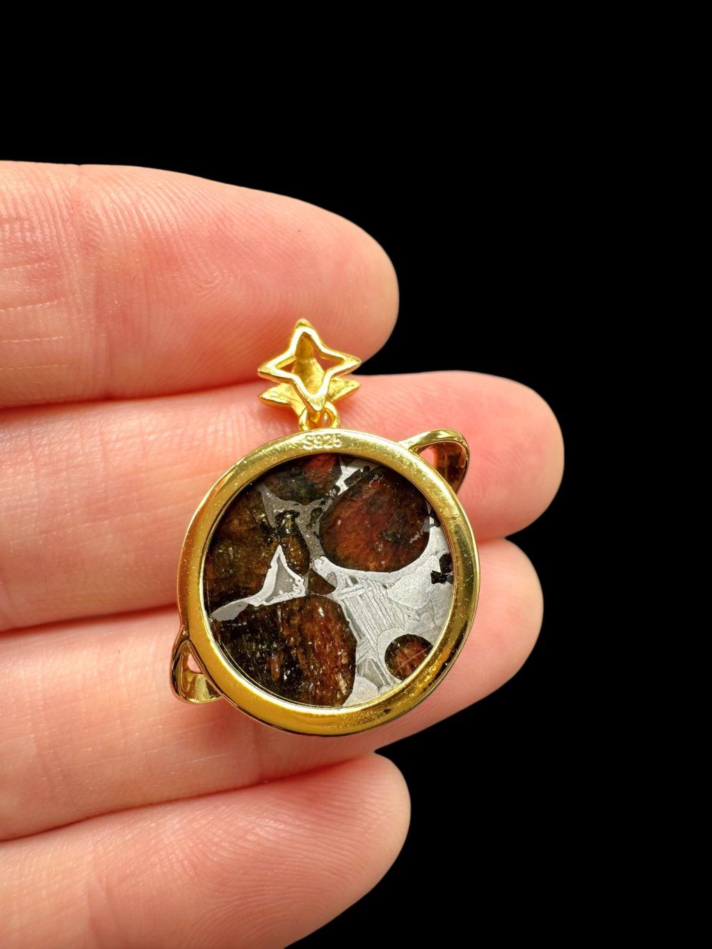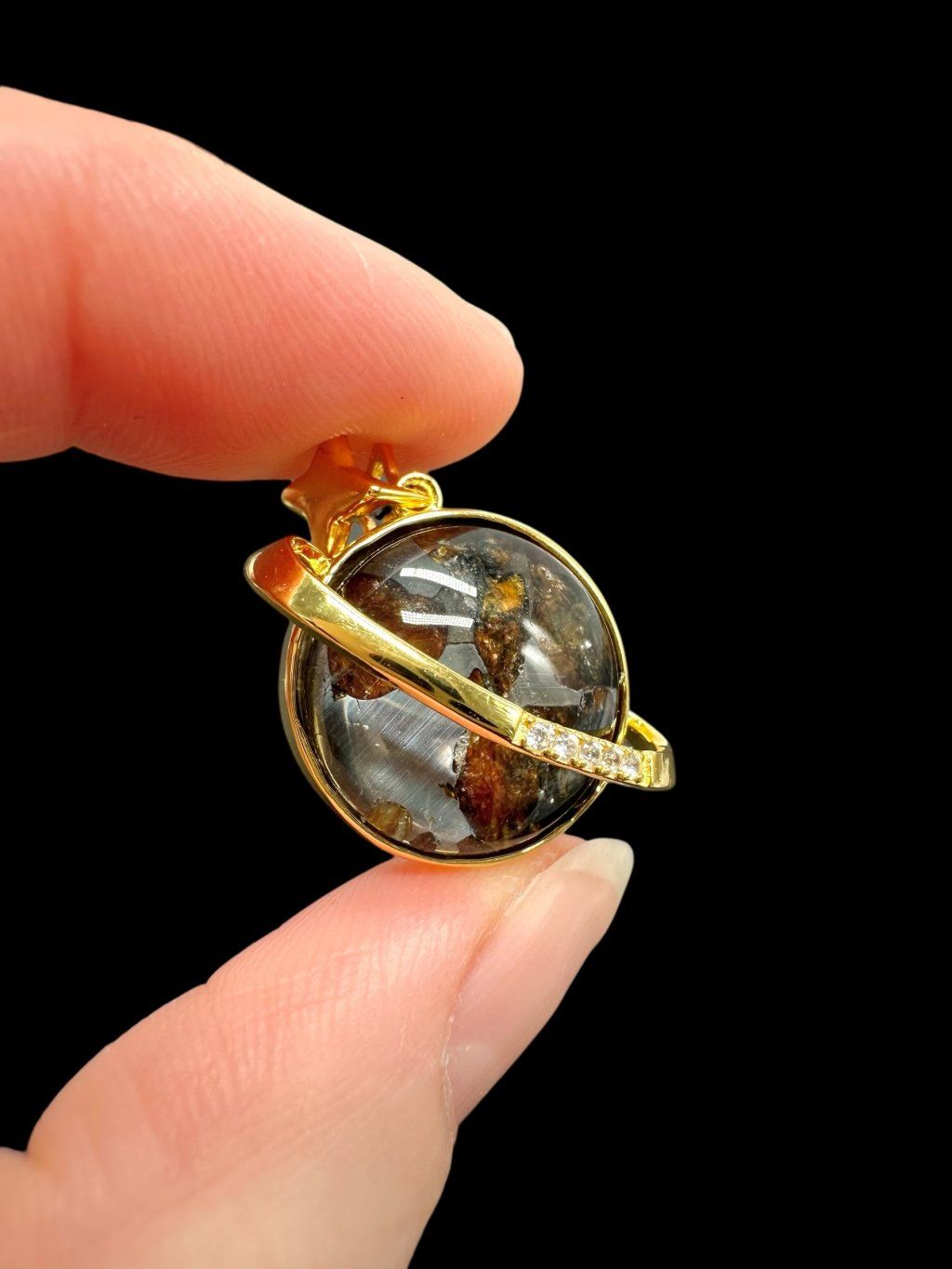 Material used to fix the meteorite to the jewel: Gold-plated metal