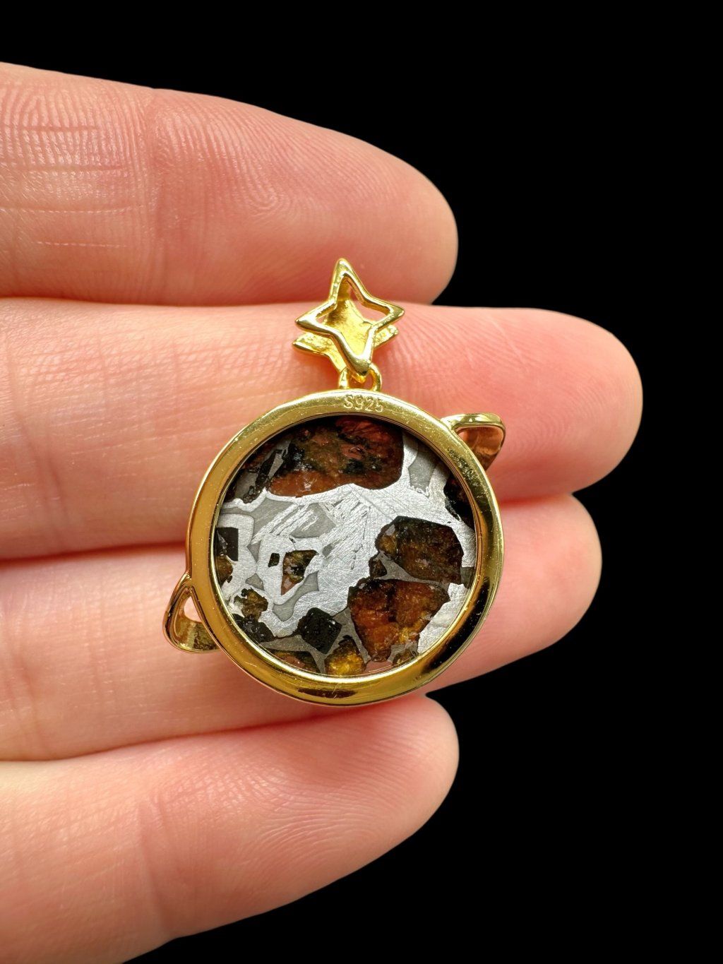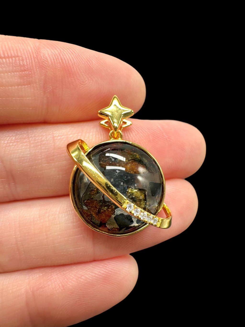 Material used to fix the meteorite to the jewel: Gold-plated metal