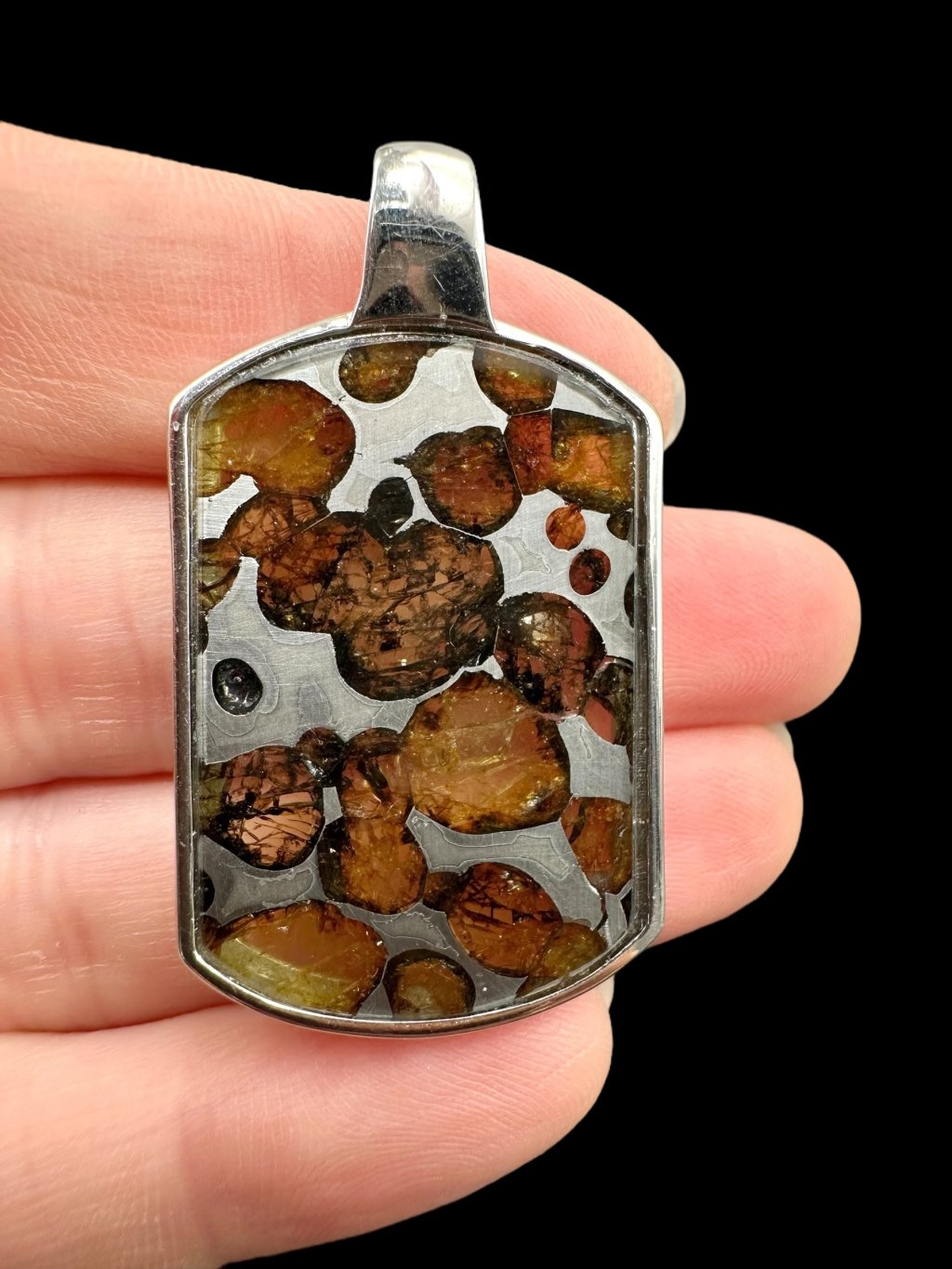 This meteorite is classified as a Pallasite, a group of stony-iron meteorites, and is known for its unique shape and structure.