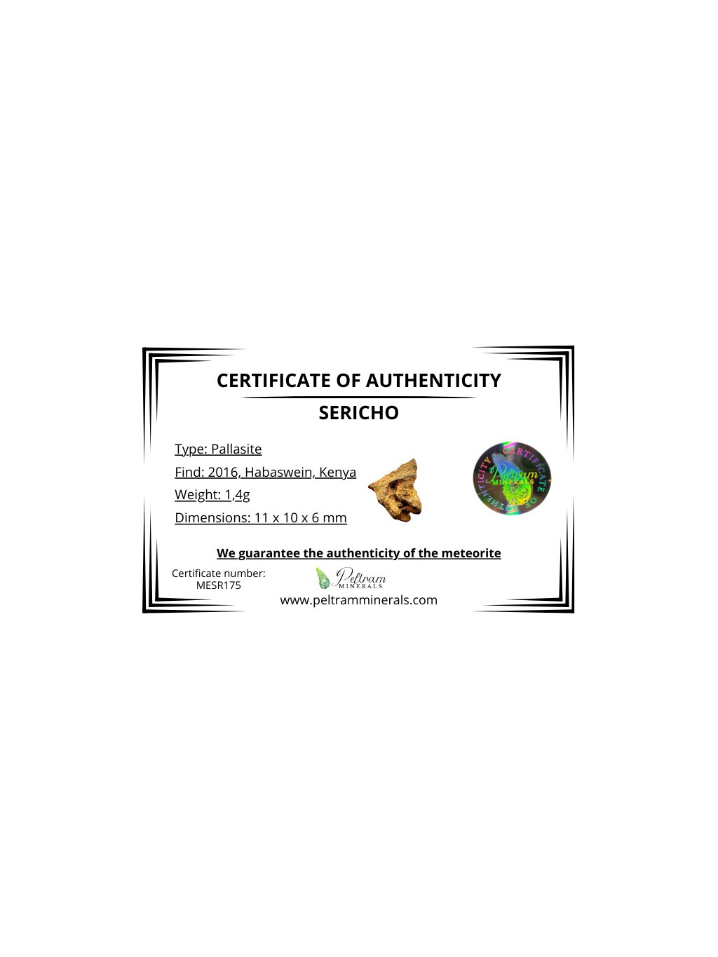 Sericho Pallasite Meteorite 1,4g – Kenya