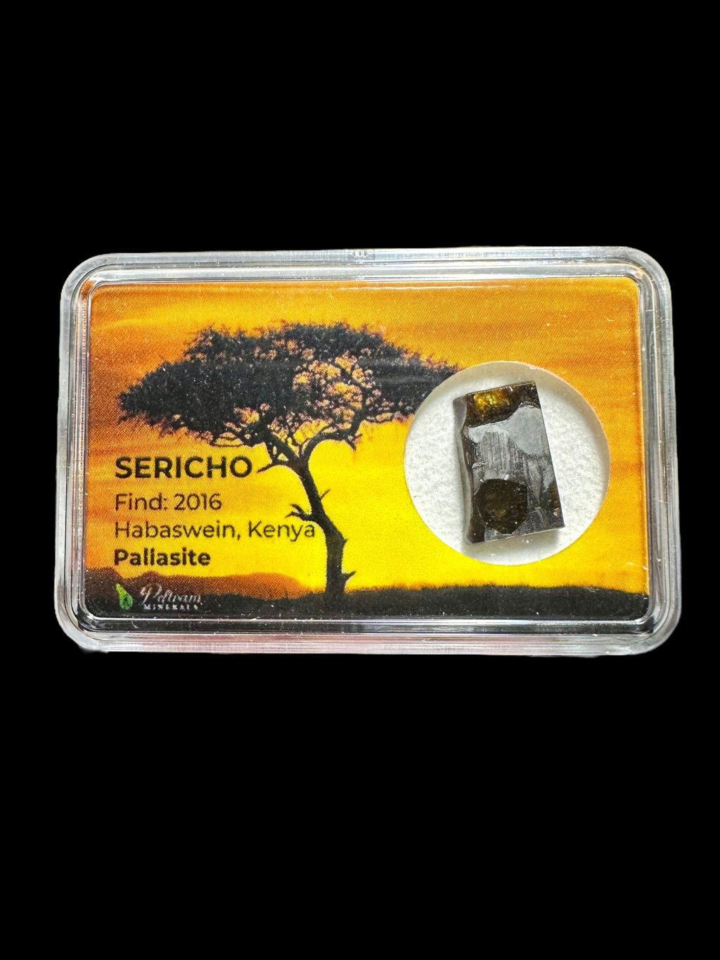 - Iron and nickel: Pallasites, including Sericho, are composed of alloys of iron and nickel, which gives the meteorite its metallic luster.