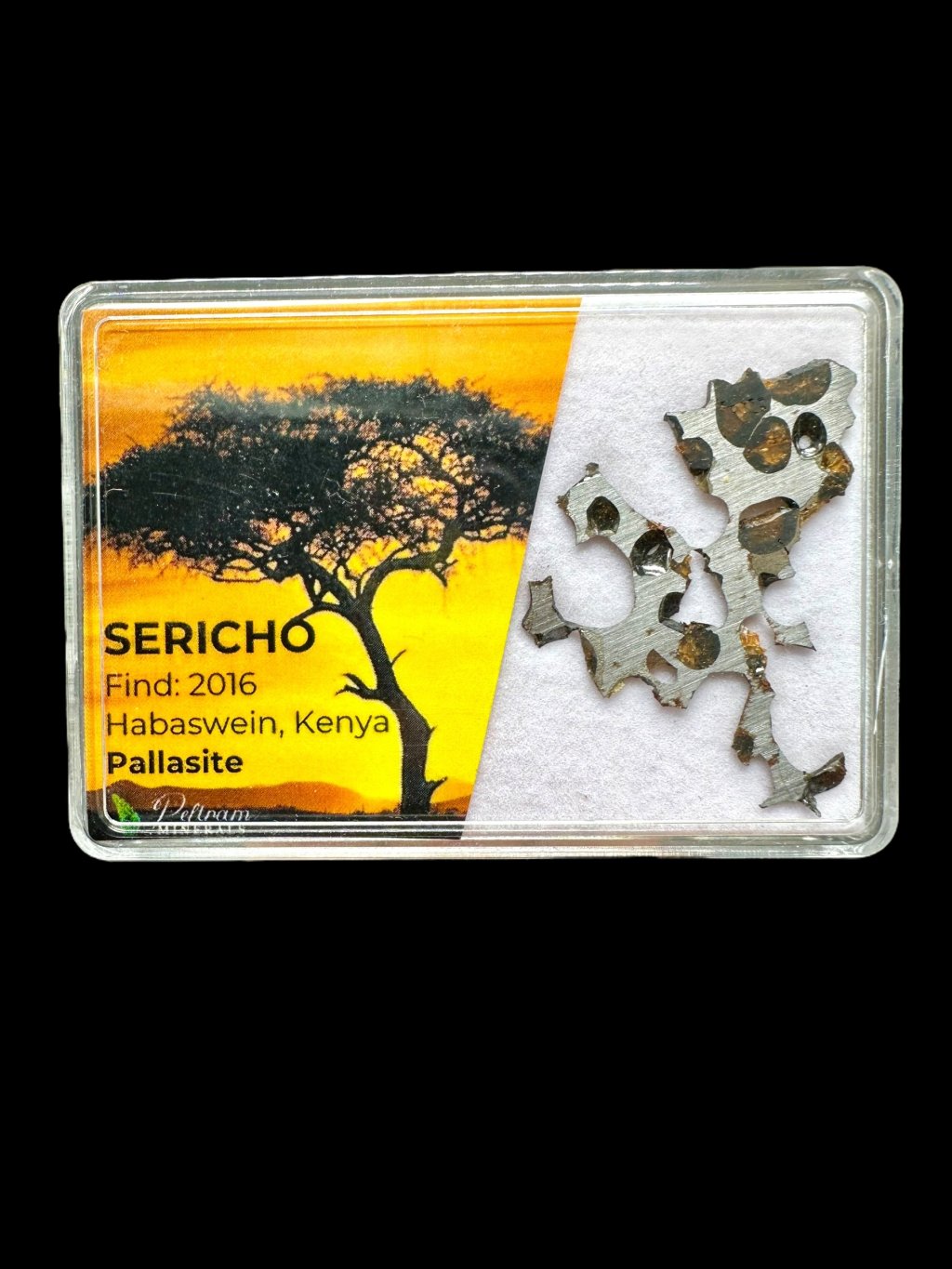 - Iron and nickel: Pallasites, including Sericho, are composed of alloys of iron and nickel, which gives the meteorite its metallic luster.