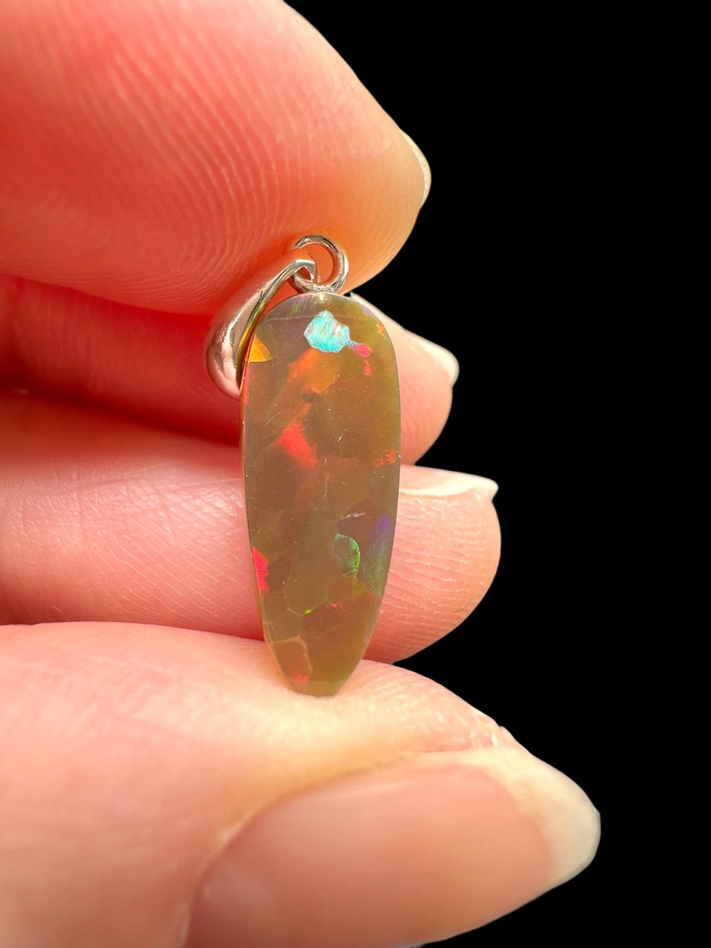 Silver faceted precious opal pendant