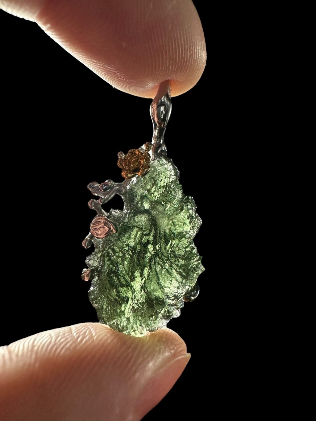 Silver moldavite pendant with gold-plated elements 5,9g