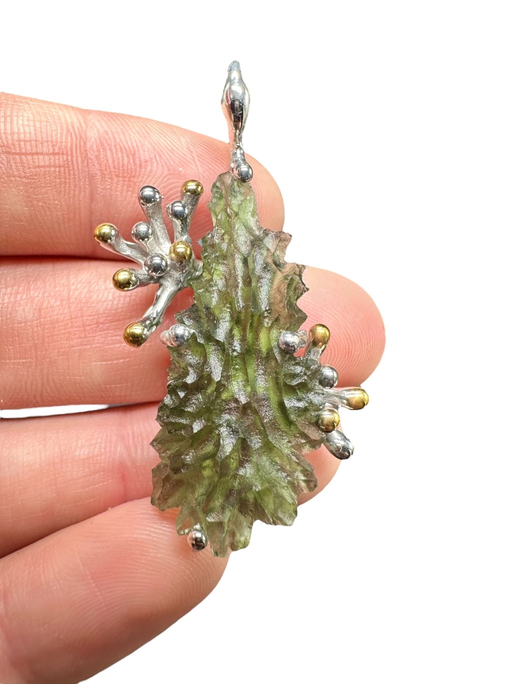 Silver moldavite pendant with gold-plated elements 8,1g