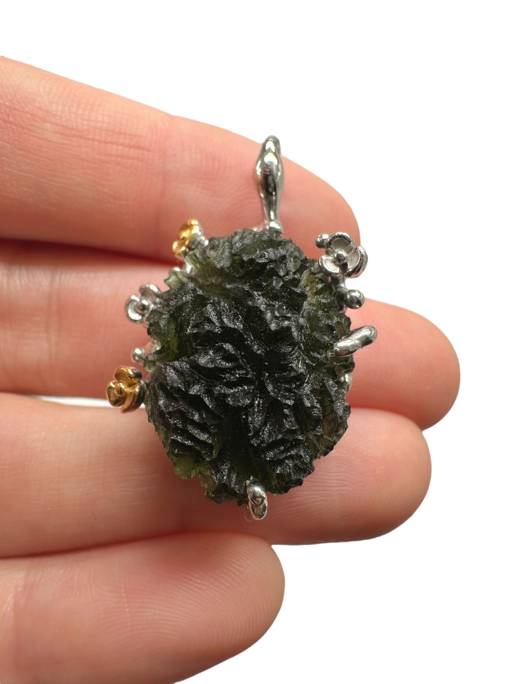 Silver moldavite pendant with gold-plated elements 9,7g