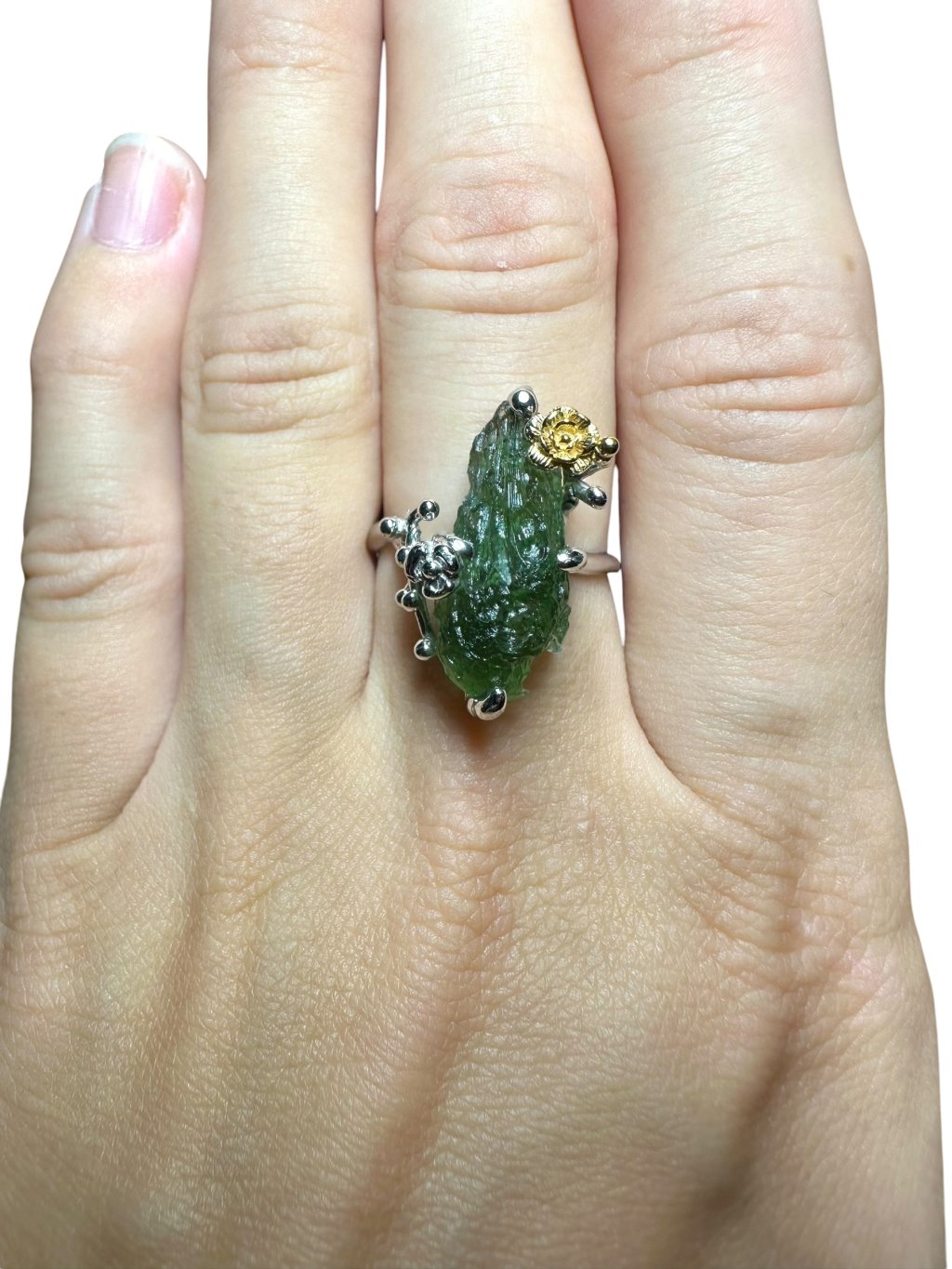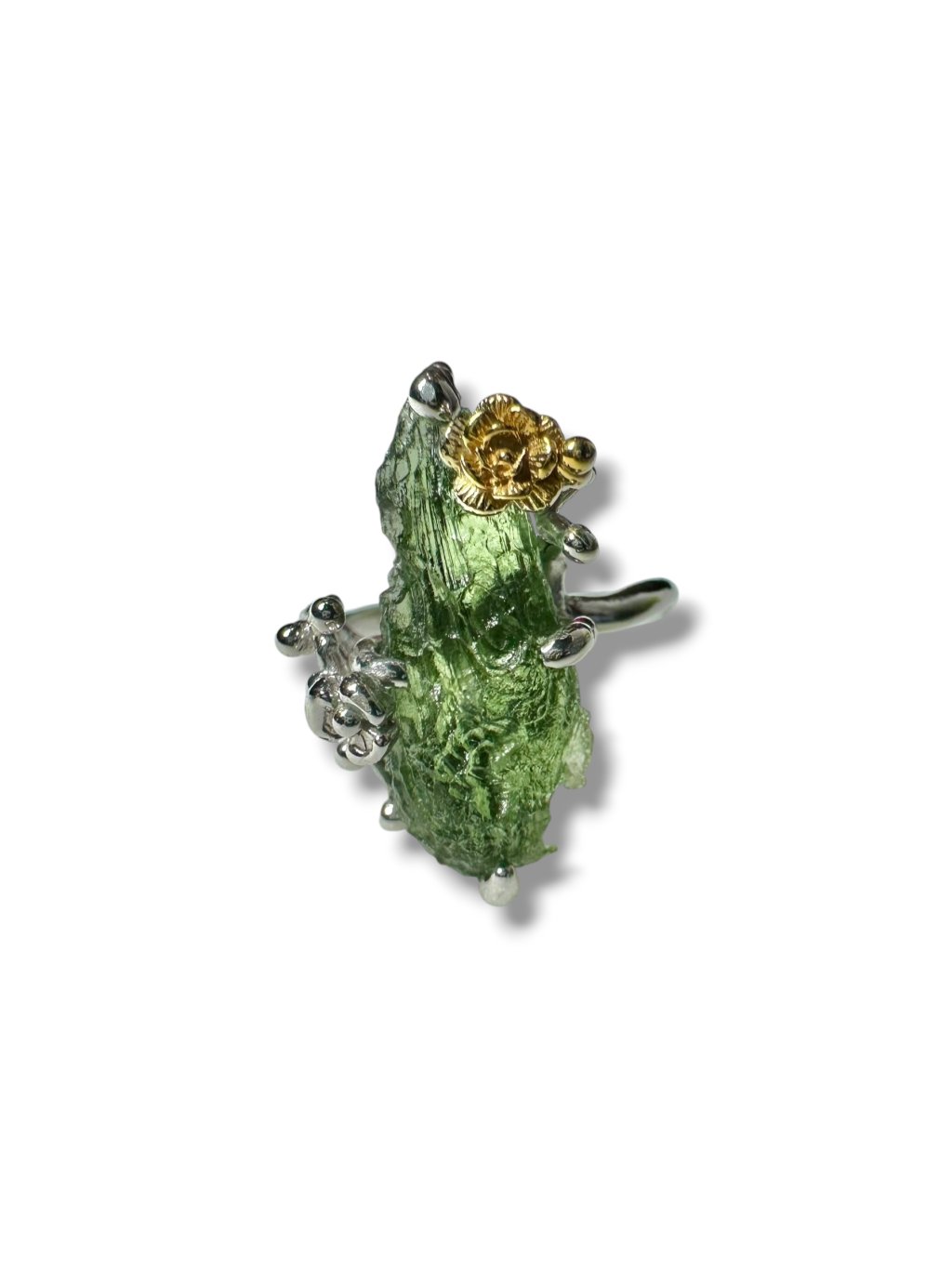 Silver moldavite ring with gold-plated elements 4,7g