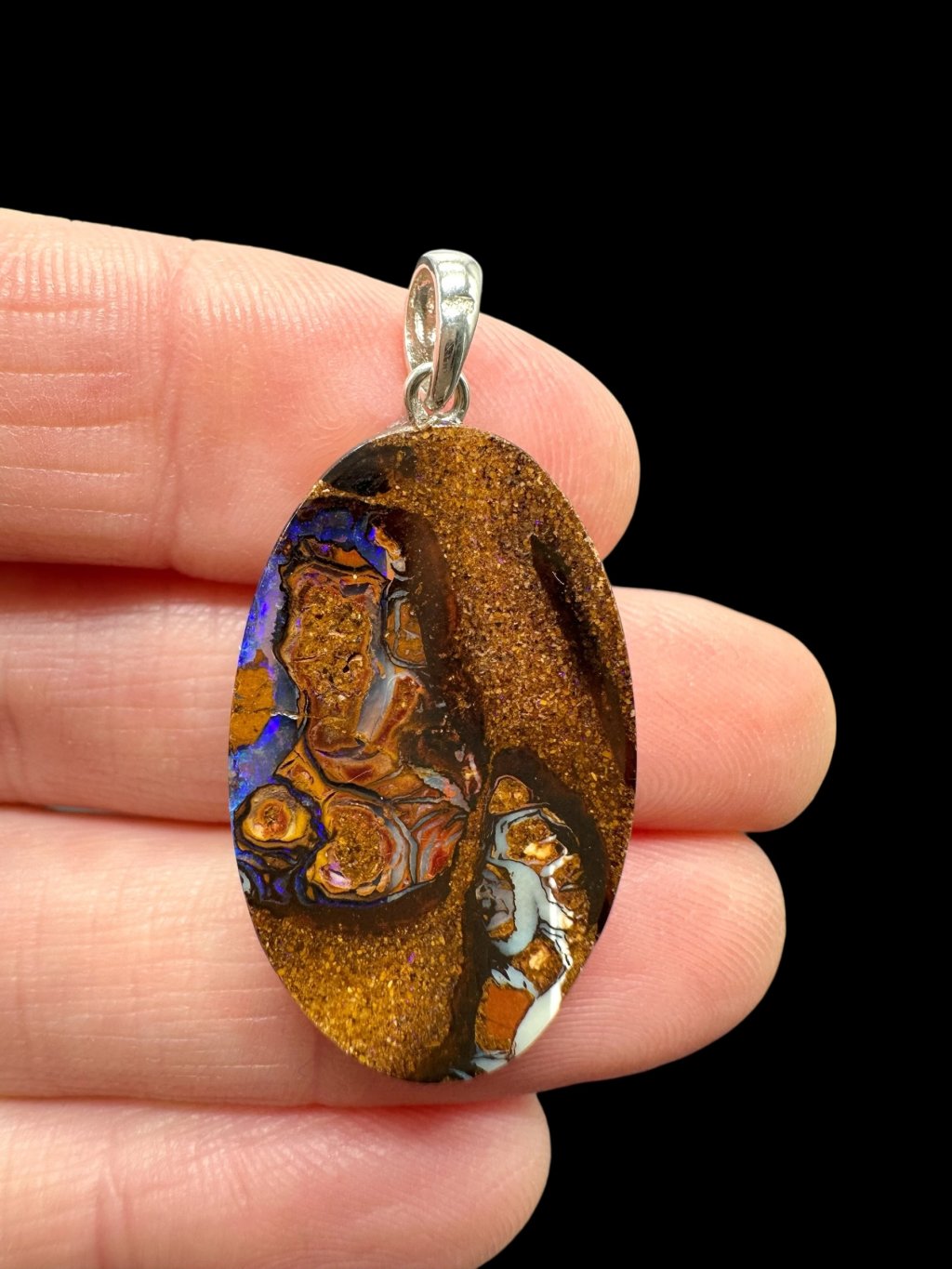 Silver pendant from Australian boulder opal