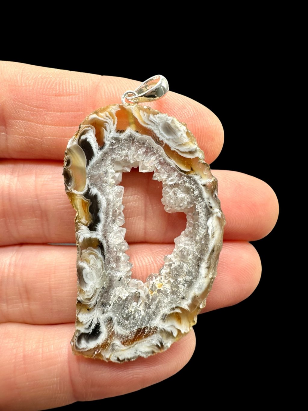 Moss agate is a fascinating and visually attractive variety of chalcedony, a cryptocrystalline form of quartz. Unlike typical agates, it lacks concentric banding and instead features characteristic dendritic inclusions that resemble moss, fern leaves, or tree branches. These patterns are not of organic origin – they are formed by iron and manganese oxides that spread throughout the stone during its formation. Moss agates typically appear translucent to milky white with inclusions in shades of green, brown, black, or red.
