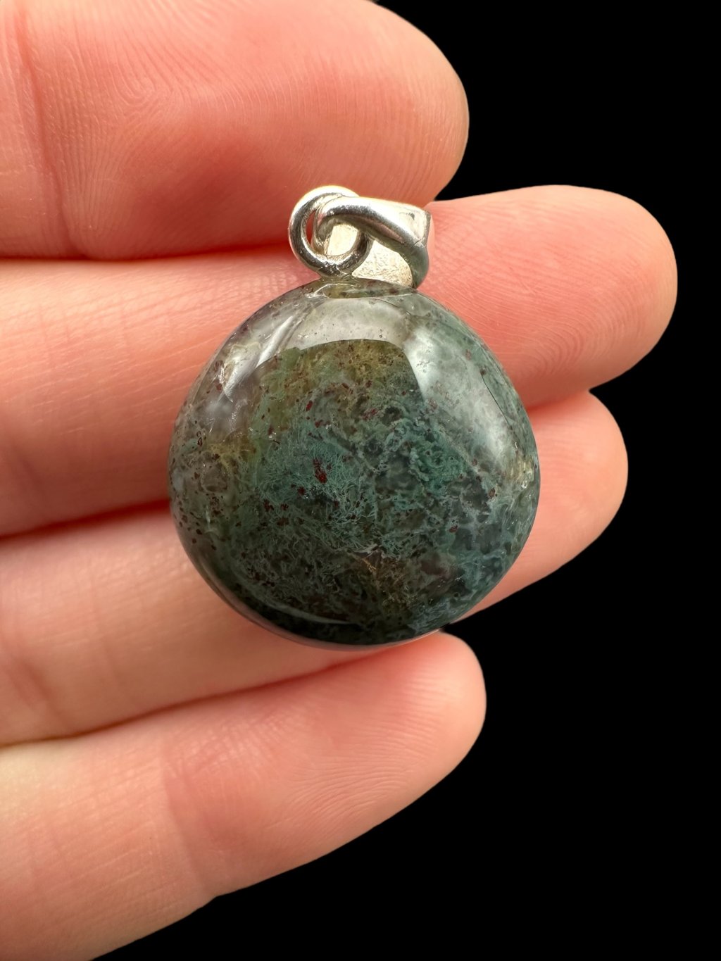 Silver pendant made from moss agate