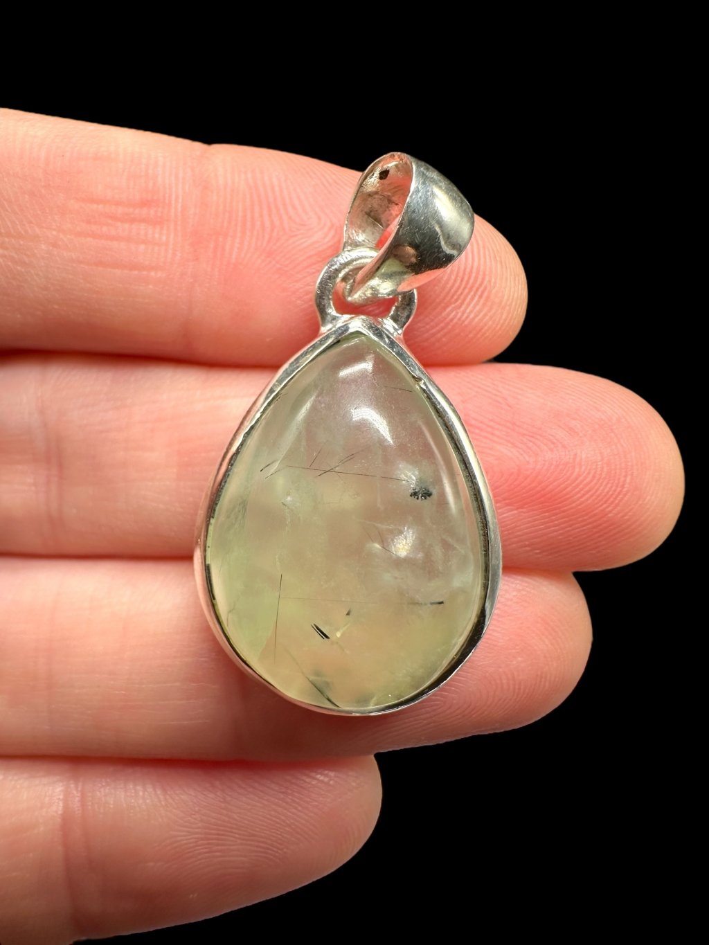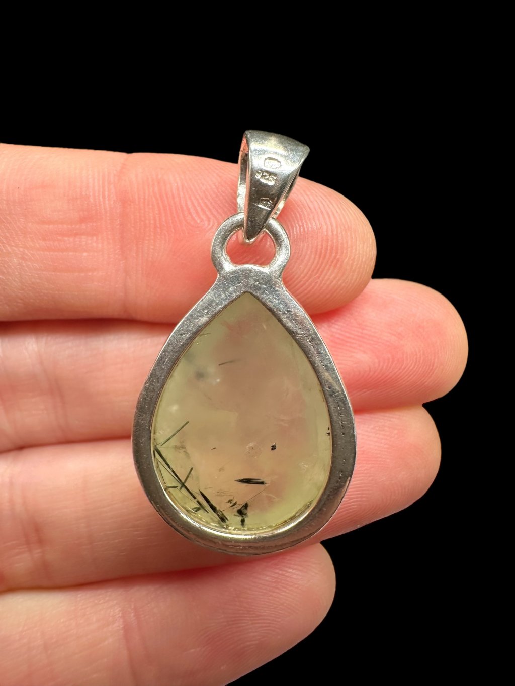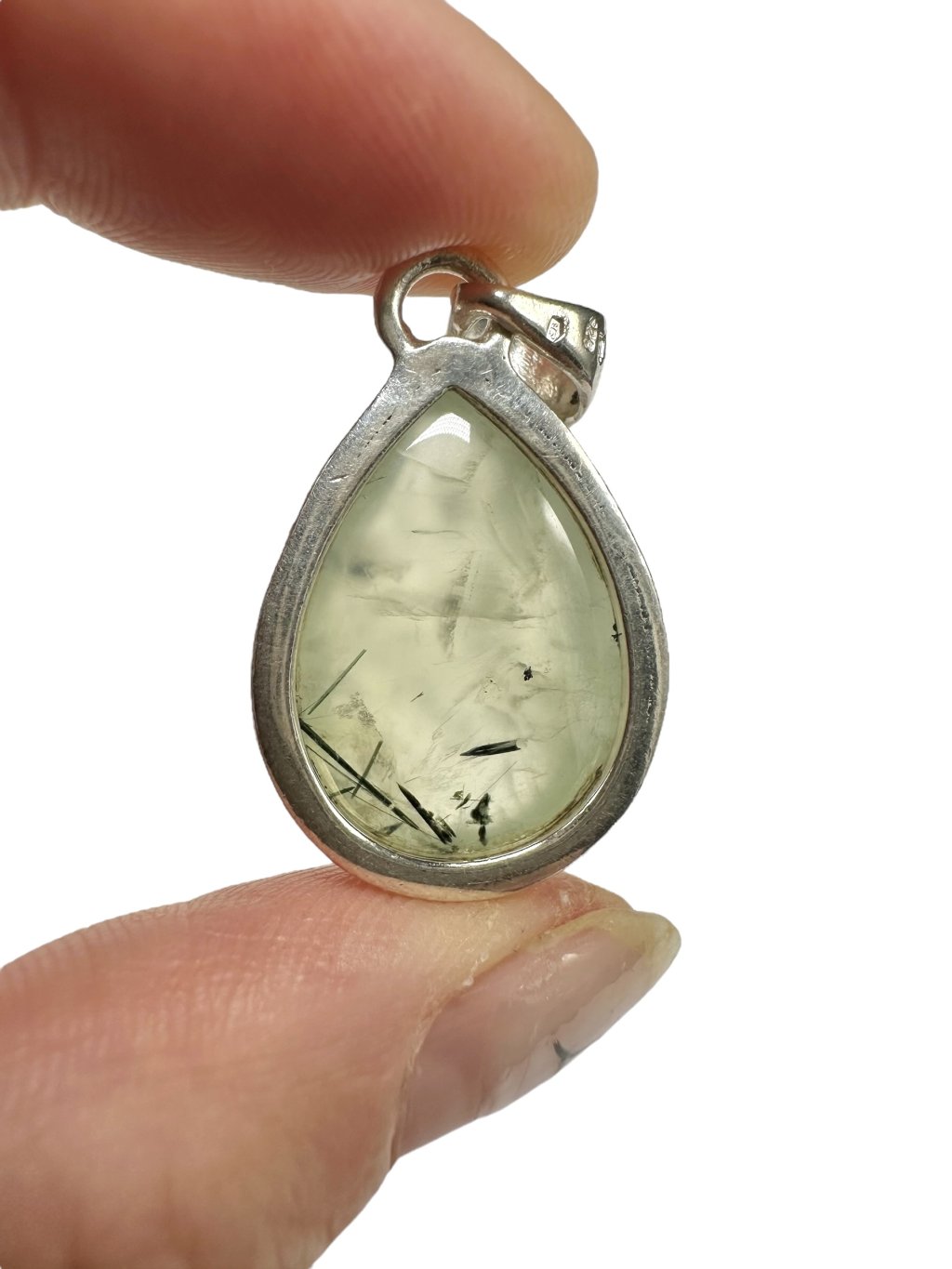 Silver pendant made of prehnite