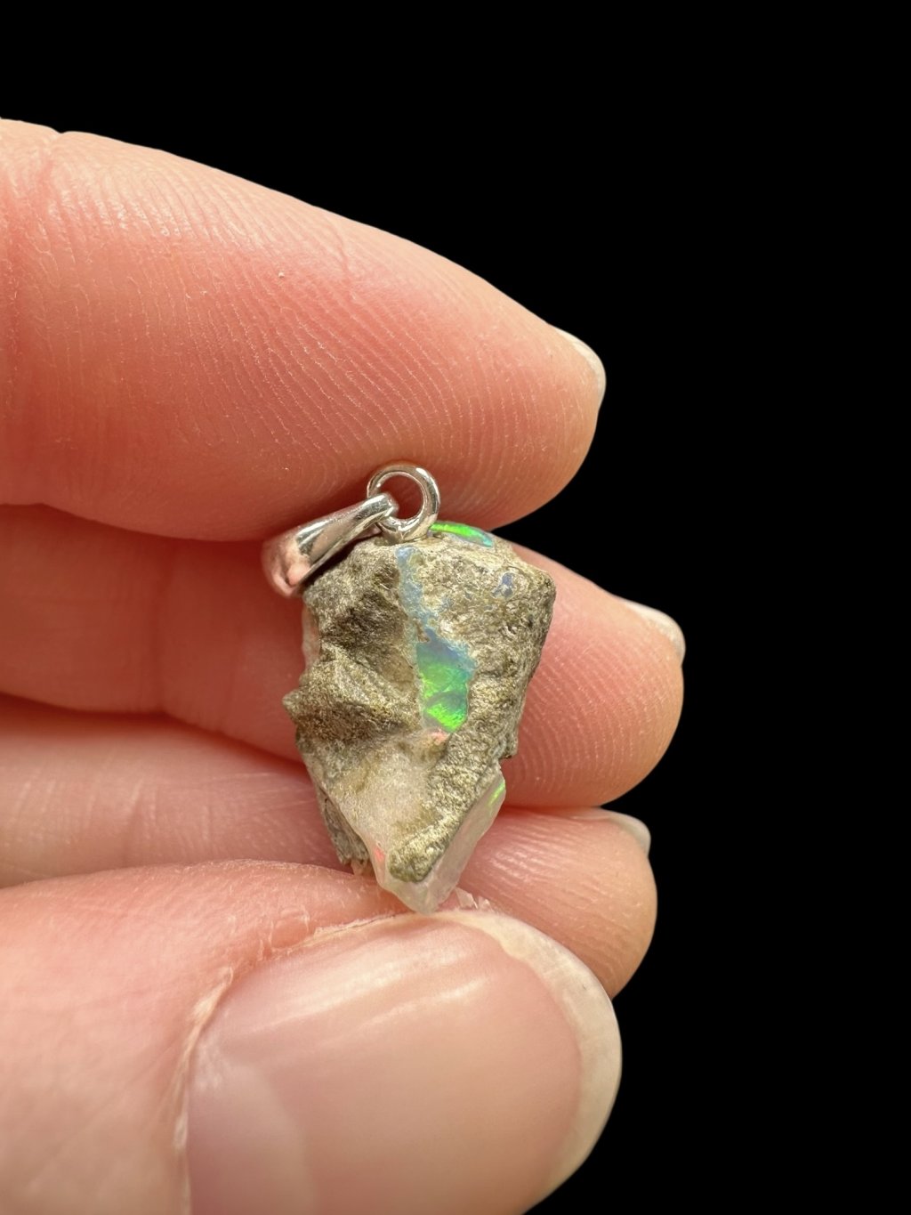 Silver precious opal pendant