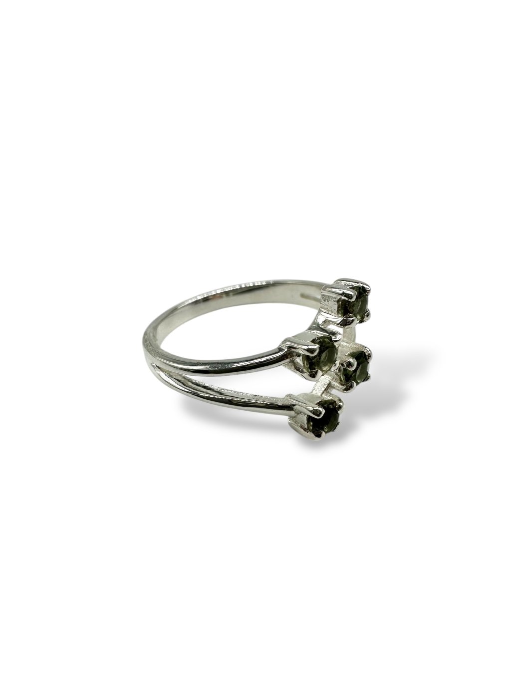 Silver ring size 54 with faceted moldavites – random piece