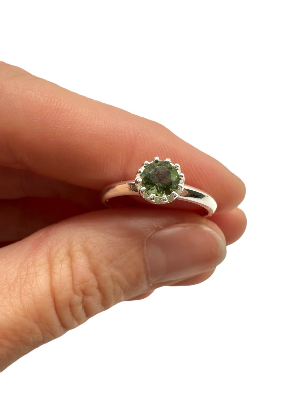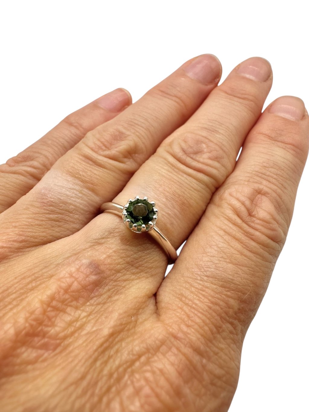Silver ring size 55 with faceted moldavite