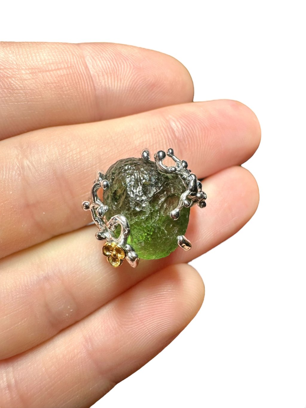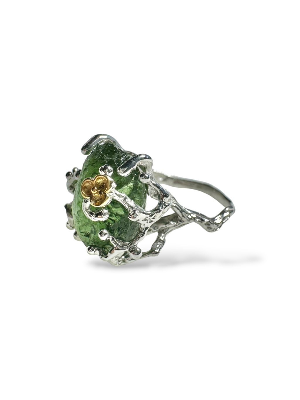 Silver ring with moldavite with gold-plated elements 5,9g