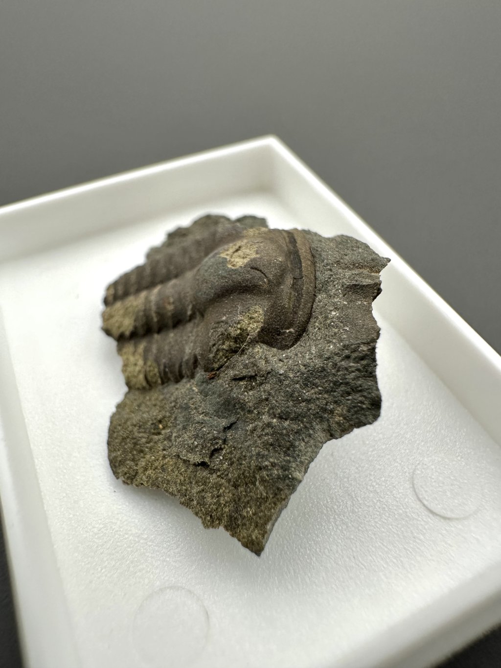 Historically, Ellipsocephalus hoffi has been relatively commonly found, as the Jince layers have long been studied by both professional paleontologists and amateur collectors. With some luck, small fragments of shells can still be found in surface quarries or on old spoil heaps, but intact and fully preserved specimens with clear details have become increasingly rare. On the collectors’ market, trilobites from Jince appear less frequently due to their cultural and paleontological significance, and their price can be higher – especially for perfectly preserved pieces with precise preparation.