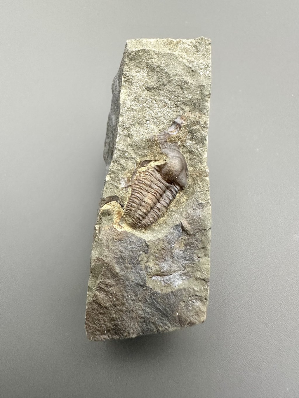 Historically, Ellipsocephalus hoffi has been relatively commonly found, as the Jince layers have long been studied by both professional paleontologists and amateur collectors. With some luck, small fragments of shells can still be found in surface quarries or on old spoil heaps, but intact and fully preserved specimens with clear details have become increasingly rare. On the collectors’ market, trilobites from Jince appear less frequently due to their cultural and paleontological significance, and their price can be higher – especially for perfectly preserved pieces with precise preparation.