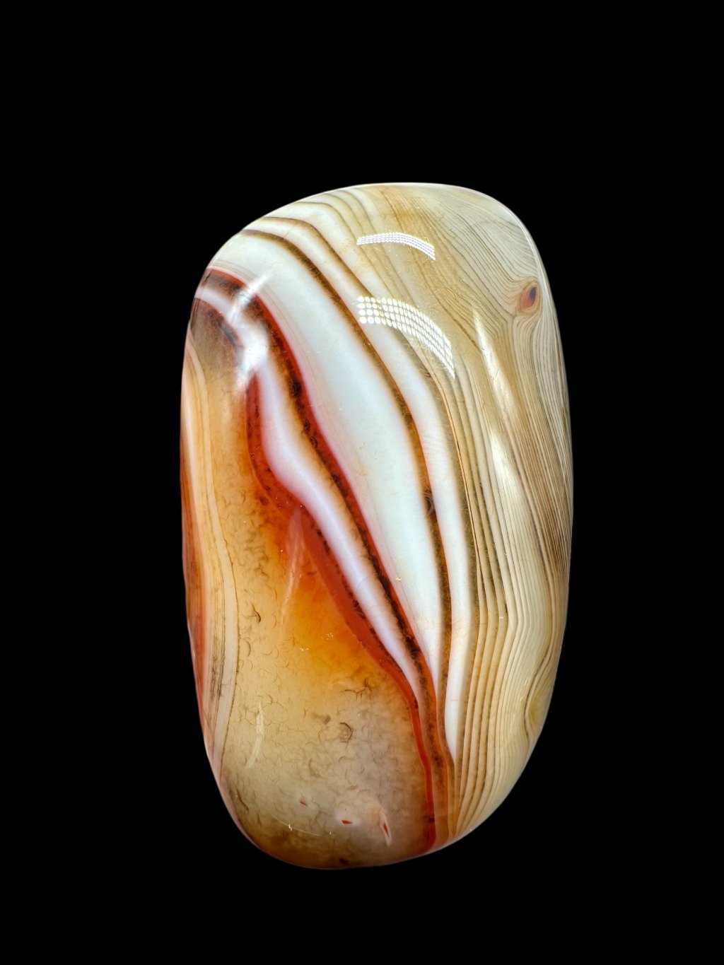 In their natural state, Madagascar agates often have a dull, weathered, and less attractive surface. Tumbling is a mechanical process in which stones are gradually smoothed and polished, removing the outer weathered layer. This enhances their natural patterns and color structure. Tumbling also rounds sharp edges, increasing the stone’s durability and making it suitable for collectors and jewelry use.