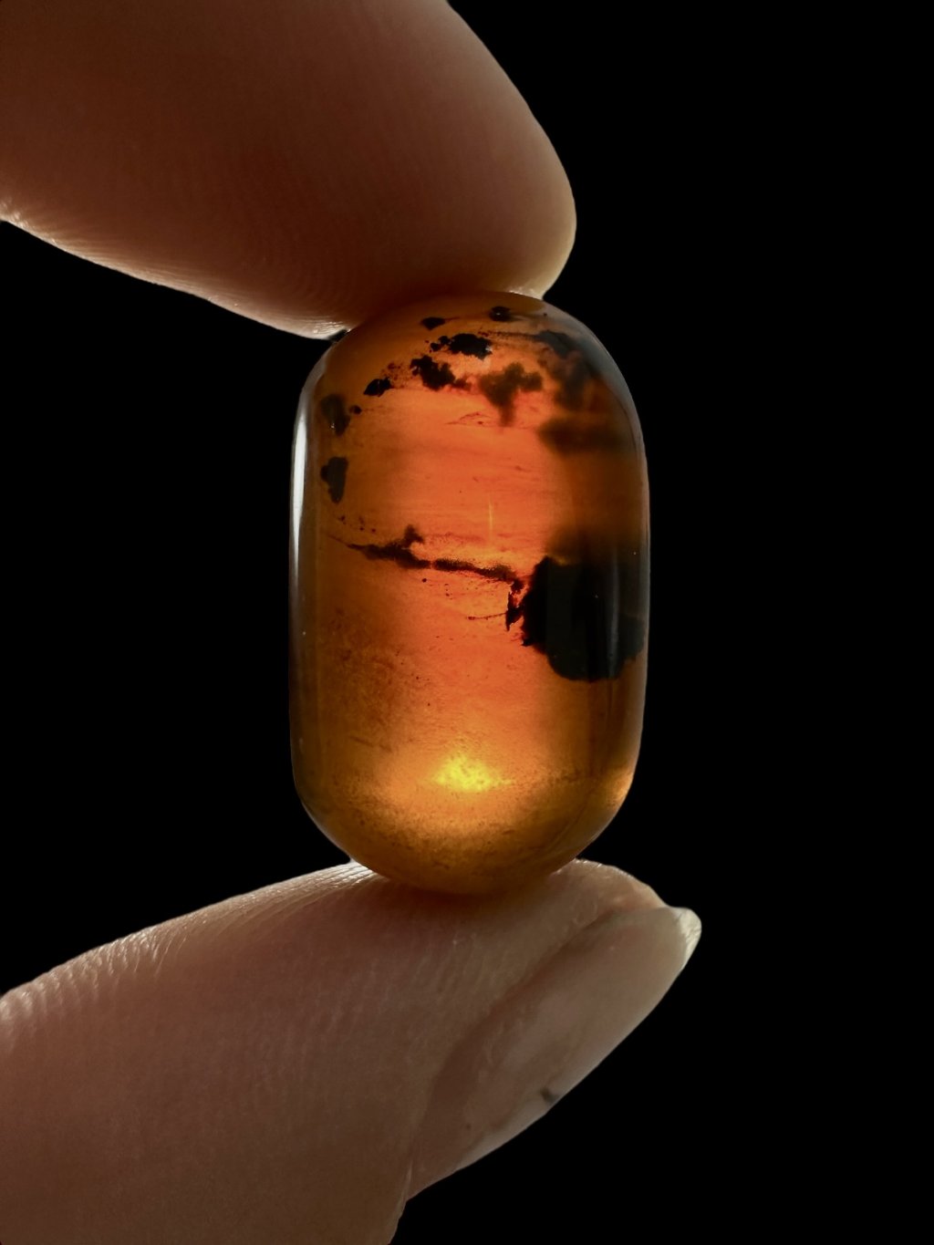 Unlike Dominican or Burmese amber, Indonesian amber very rarely contains insect inclusions. It most often contains plant remnants such as fragments of leaves, needles, or resin bubbles. Air bubbles can produce interesting optical effects. Occasionally, microorganisms appear. The geological conditions and age of this amber likely did not allow for the preservation of larger amounts of animal inclusions.