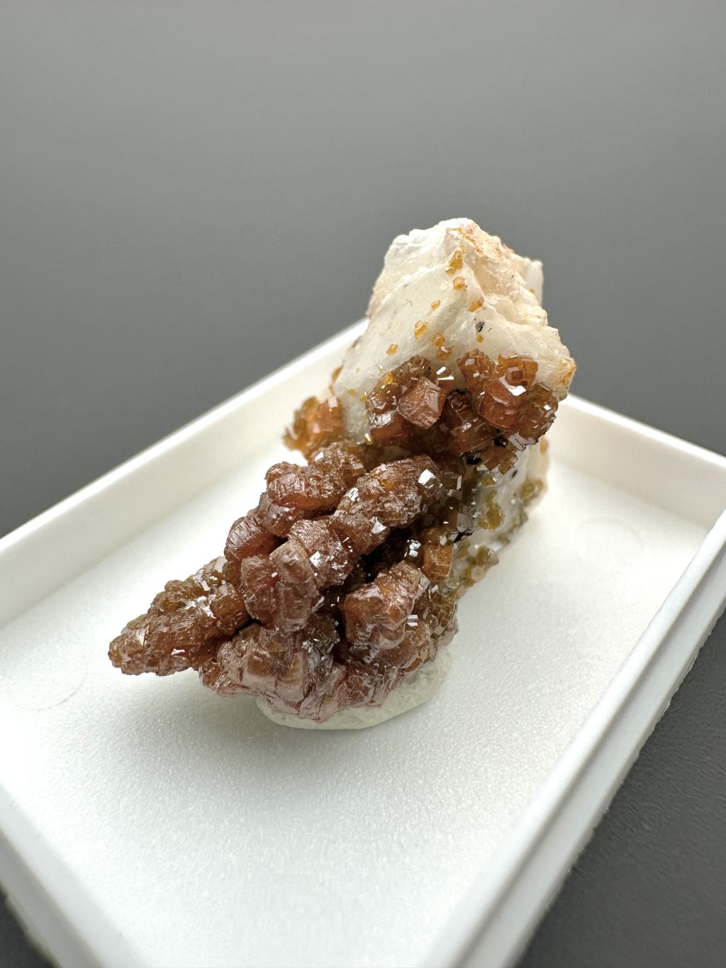 Vanadinite occurs mainly in dry, oxidised lead deposits, especially in Morocco, where some of the finest specimens have been found. Other important localities are Mexico, Argentina, Namibia, and the United States (e.g. Arizona).