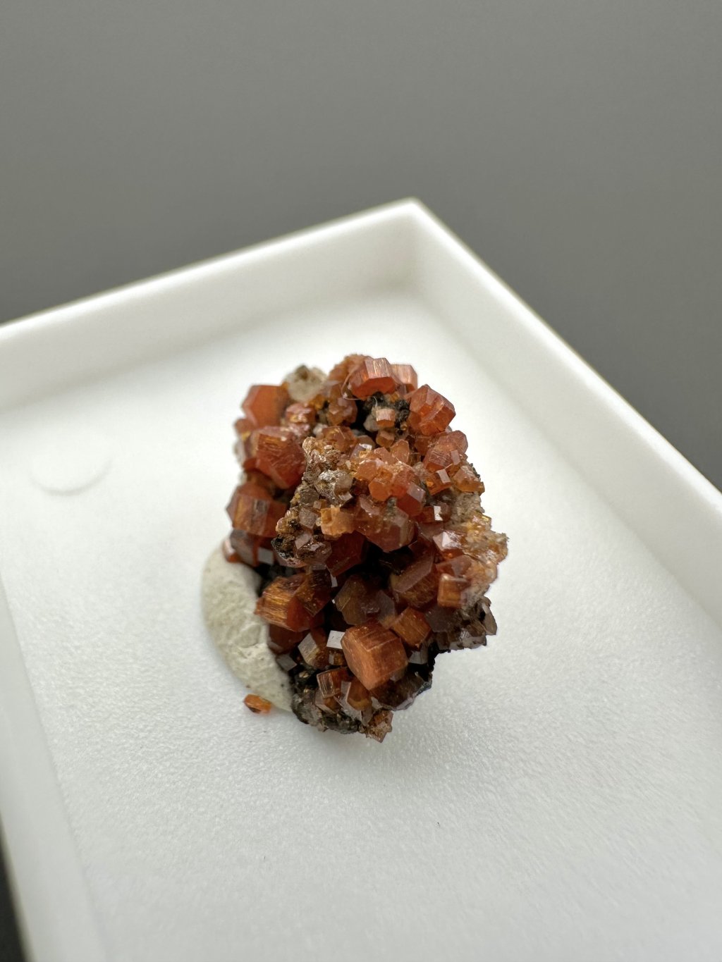 Vanadinite occurs mainly in dry, oxidised lead deposits, especially in Morocco, where some of the finest specimens have been found. Other important localities are Mexico, Argentina, Namibia, and the United States (e.g. Arizona).