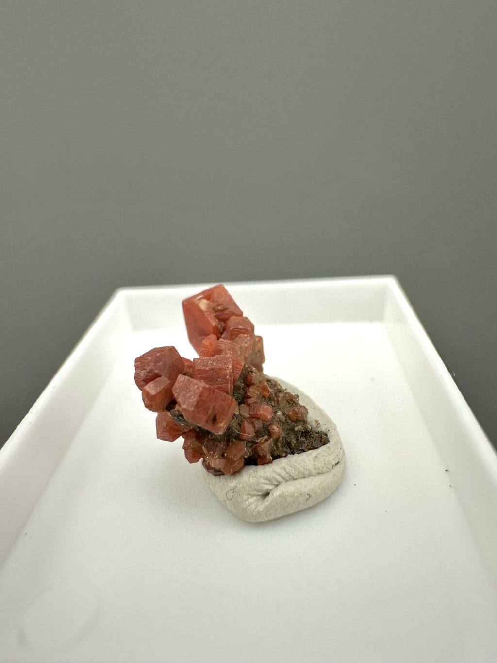 Vanadinite occurs mainly in dry, oxidised lead deposits, especially in Morocco, where some of the finest specimens have been found. Other important localities are Mexico, Argentina, Namibia, and the United States (e.g. Arizona).