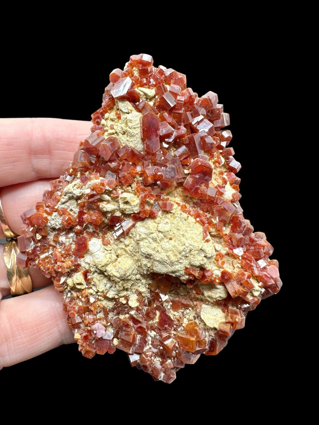 Vanadinite occurs mainly in dry, oxidised lead deposits, especially in Morocco, where some of the finest specimens have been found. Other important localities are Mexico, Argentina, Namibia, and the United States (e.g. Arizona).