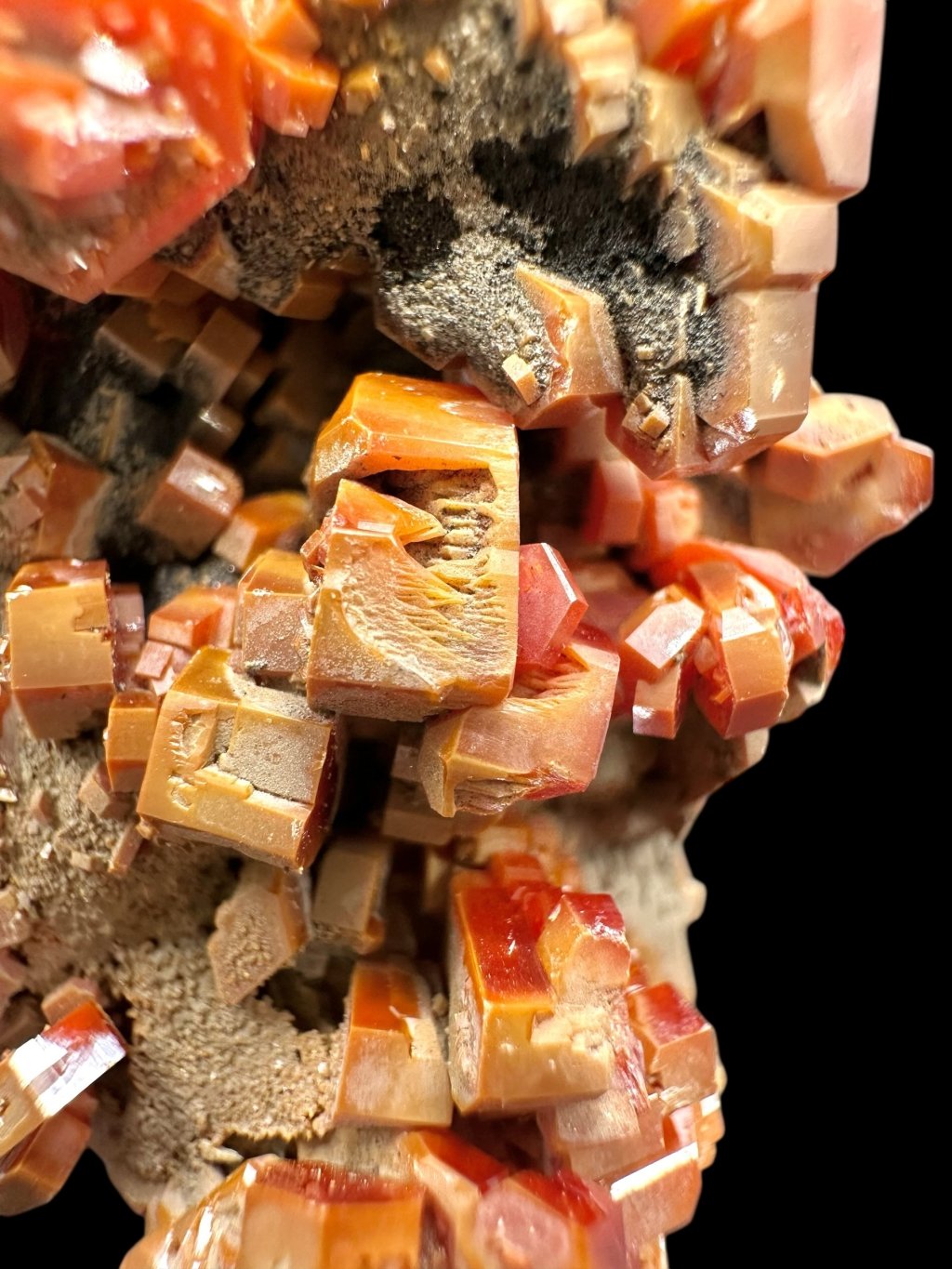 Vanadinite occurs mainly in dry, oxidised lead deposits, especially in Morocco, where some of the finest specimens have been found. Other important localities are Mexico, Argentina, Namibia, and the United States (e.g. Arizona).