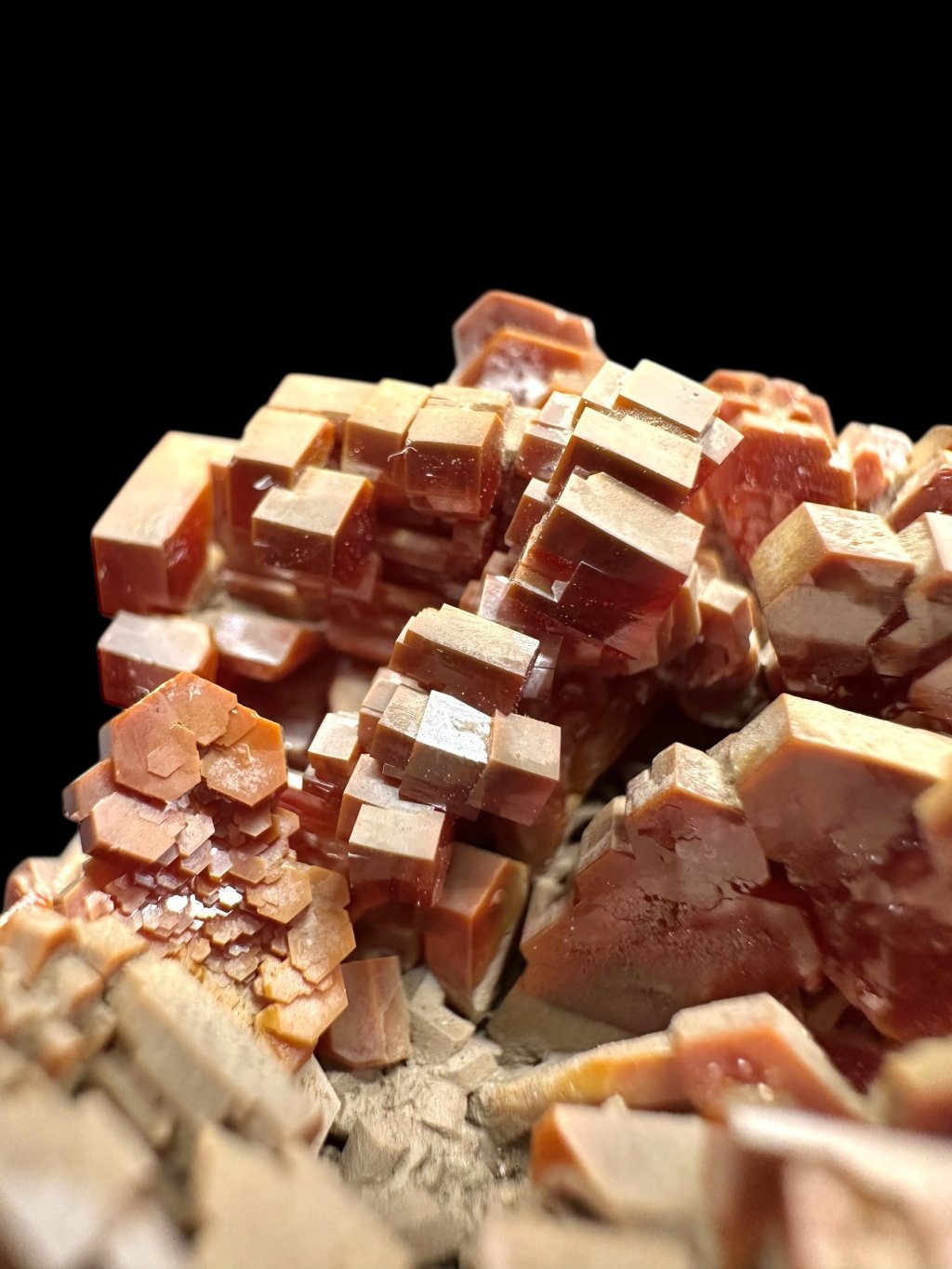 Vanadinite occurs mainly in dry, oxidised lead deposits, especially in Morocco, where some of the finest specimens have been found. Other important localities are Mexico, Argentina, Namibia, and the United States (e.g. Arizona).