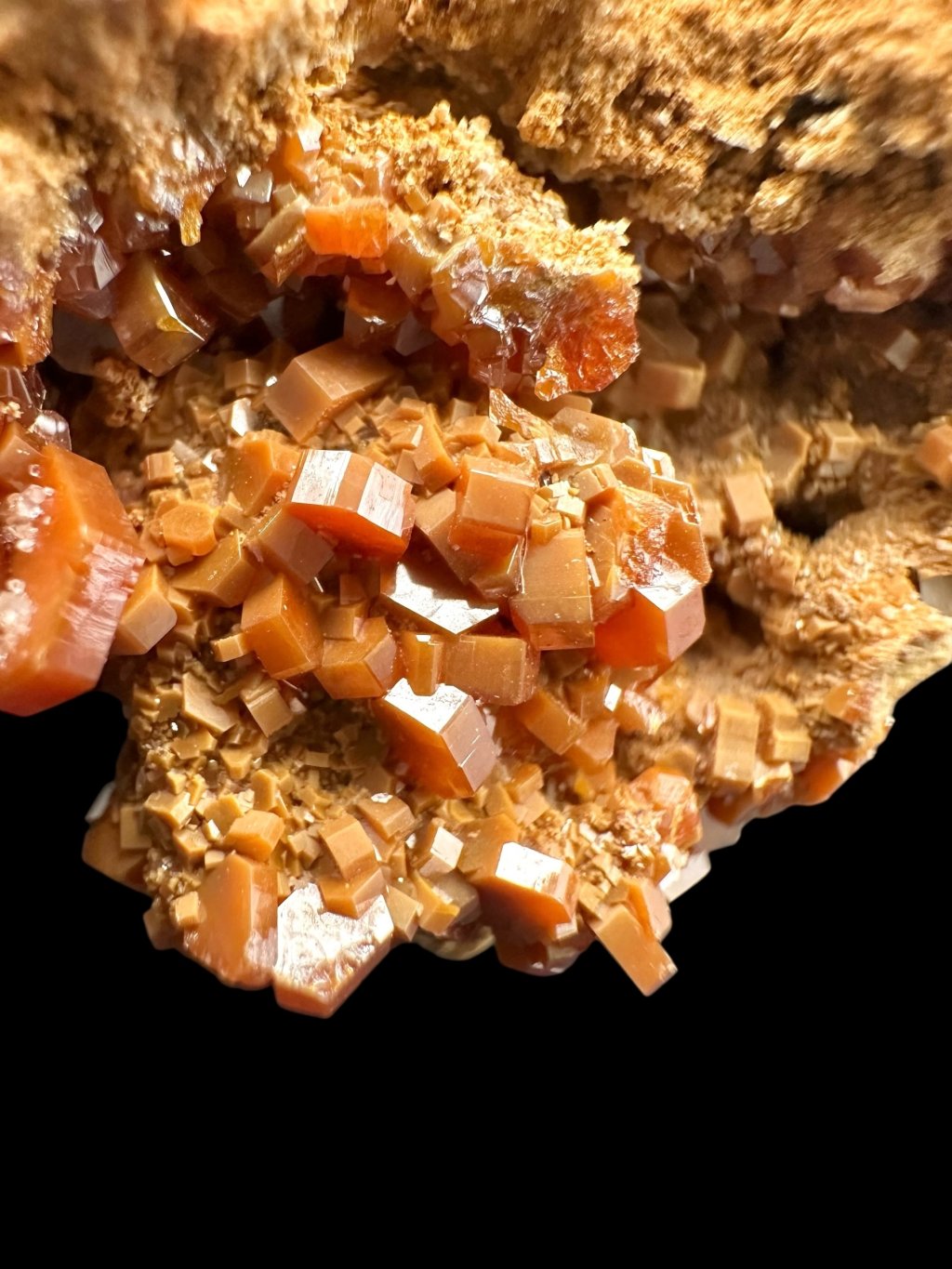 Vanadinite occurs mainly in dry, oxidised lead deposits, especially in Morocco, where some of the finest specimens have been found. Other important localities are Mexico, Argentina, Namibia, and the United States (e.g. Arizona).