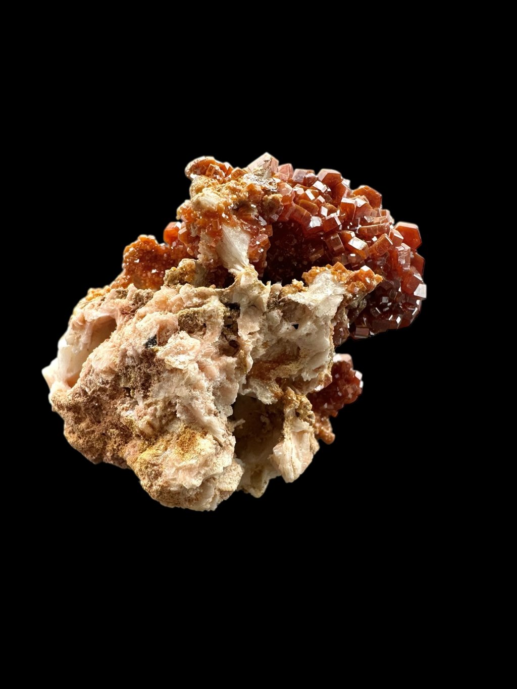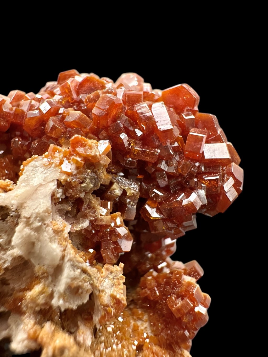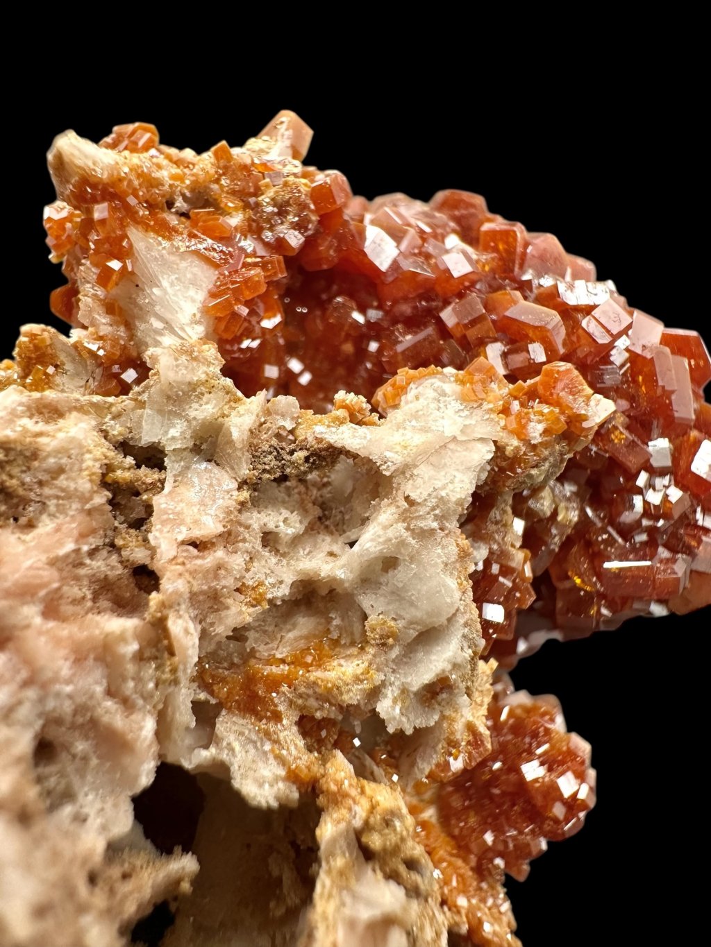 Vanadinite occurs mainly in dry, oxidised lead deposits, especially in Morocco, where some of the finest specimens have been found. Other important localities are Mexico, Argentina, Namibia, and the United States (e.g. Arizona).
