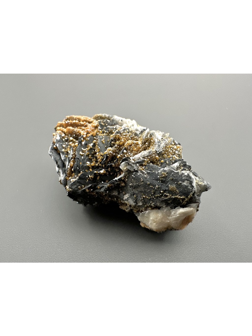 Vanadinite often forms beautiful compositions with barite, creating very aesthetic collectible specimens. In some cases, the barite, which is usually white or yellowish, may be covered with manganese salts. The manganese salts give the barite dark brown to black hues, creating a contrast with the vanadinite crystals. These crystals typically occur in bright red or orange, creating a visually attractive combination of