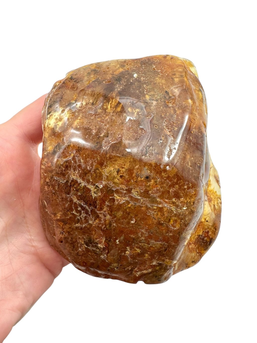 Colombian amber can vary in color from light yellow to dark brown, with honey and reddish tones also occurring. As with other amber types, it can be found in transparent forms, as well as in specimens with various degrees of cloudiness.